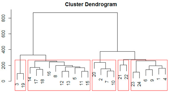 Cluster analysis [23] is used to divide observations into groups or clusters, based on the values of several observed variables. The Ward’s method used in this study begins with each point as a separate cluster. The process followed is described below: