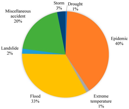 6]. Flooding is linked to a multitude of infectious diseases caused by the pollution of water sources, which can result in the spread of waterborne illnesses such as cholera, dysentery, and typhoid fever [