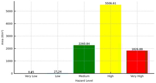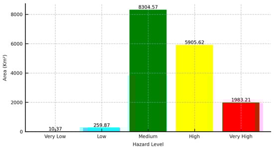 The quantitative distribution of flood hazard risk levels in the coastal Delta region provides a detailed statistical analysis of the extent of areas under different risk categories. This quantitative breakdown aids in prioritizing areas for intervention and resource allocation, allowing stakeholders to focus on regions with the highest need for flood mitigation and preparedness strategies. The visualization and accompanying data are essential for implementing targeted flood risk management initiatives, fostering a proactive approach to enhancing community resilience against flood hazards.