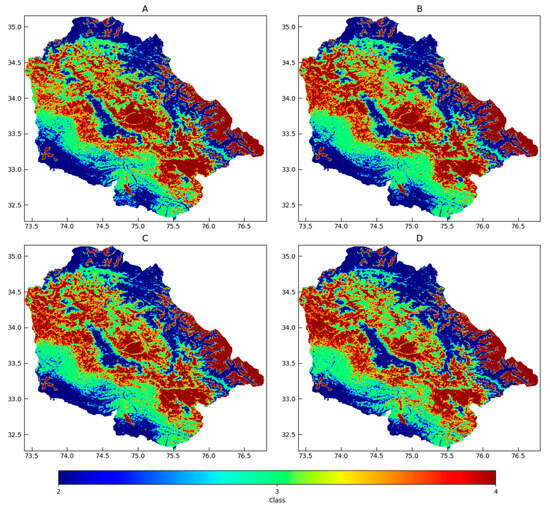 The northernmost area of the Indian subcontinent, comprising Jammu, Kashmir, and its surrounding regions, is distinguished by its significant geographical and cultural attributes [1]. This region spans from 33°17′ to 37°20′ north latitude and 73°25′ to 80°30′ east longitude, as illustrated in Figure 2. As a result, the area has a diverse range of landscapes, including the subtropical expanses of Jammu, the temperate climate of the Kashmir Valley, and the harsh, cold desert of Ladakh [17]. This heterogeneity in terrain and the rich cultural fabric of the region makes it a subject of interest for researchers from various disciplines. The region’s uniqueness lies in its physical characteristics and the intricate cultural and historical narratives that have formed its identity over the centuries.