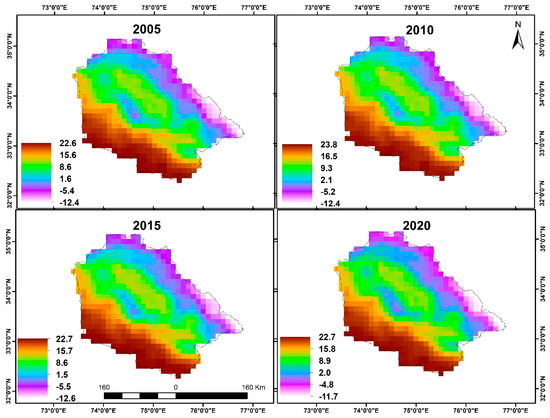 Spatio-temporal changes in temperature from 2005 to 2020.