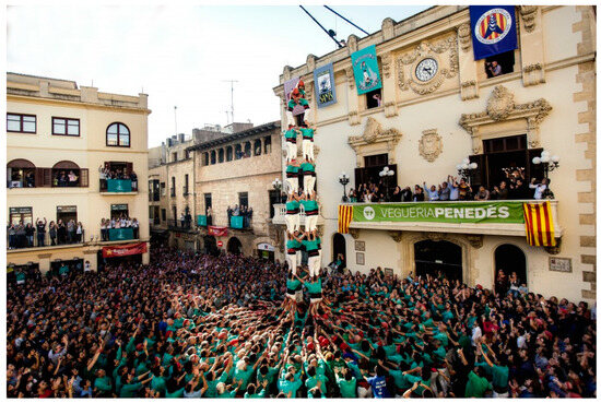 - Vazci, M. Catalonia’s human towers: Nationalism, associational culture, and the politics of performance. Am. Ethnol. 2015, 43, 353–368. [Google Scholar] [CrossRef]