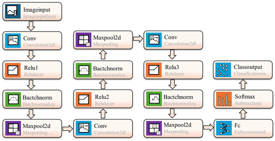 In the architecture of the CNN designed for predicting drought conditions (Figure 2), a series of layers is meticulously integrated, with each layer fulfilling a specific role and providing unique benefits. The Image Input Layer (imageInputLayer) acts as the gateway for input images, ensuring uniformity in data dimensions essential for consistently processing drought imagery, a critical factor in preserving spatial detail. The Convolution Layer (convolution2dLayer) specializes in feature extraction, offering the significant advantage of automatically learning feature representations from the data, removing manual feature extraction. To bolster the stability and accelerate the training process by mitigating internal covariate shifts, the Batch Normalization Layer (batchNormalizationLayer) adjusts and normalizes the inputs for every layer [56]. Internal covariate shift pertains to the alteration in the input data distribution to the following layers caused by frequent weight modifications during the network’s training phase, which can lead to instability in the learning process [27].