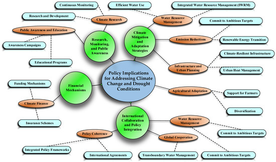 Based on the presented research findings, Canada faces significant risks from increasing drought and rising Ts. Immediate and decisive actions are essential to address these challenges and adapt to the changing climate. Figure 11 outlines critical short-term and long-term strategies to combat climate change, with brief explanations below.