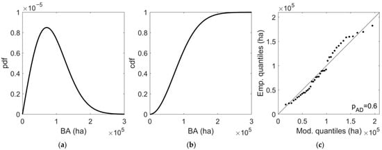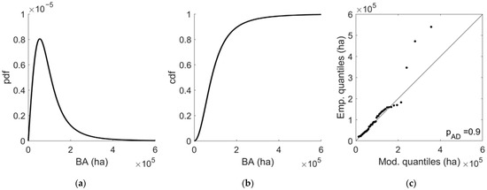 - DaCamara, C.C.; Libonati, R.; Nunes, S.A.; de Zea Bermudez, P.; Pereira, J.M.C. Global-scale statistical modelling of the radiative power released by vegetation fires using a doubly truncated lognormal body distribution with generalized Pareto tails. Phys. A Stat. Mech. Appl. 2023, 625, 129049. [Google Scholar] [CrossRef]