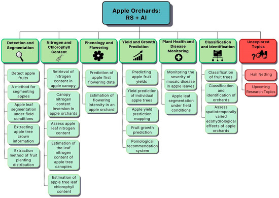 - Furuya, D.E.G.; Bolfe, É.L.; Parreiras, T.C.; Barbedo, J.G.A.; Santos, T.T.; Gebler, L. Combination of Remote Sensing and Artificial Intelligence in Fruit Growing: Progress, Challenges, and Potential Applications. Remote Sens. 2024, 16, 4805. [Google Scholar] [CrossRef]