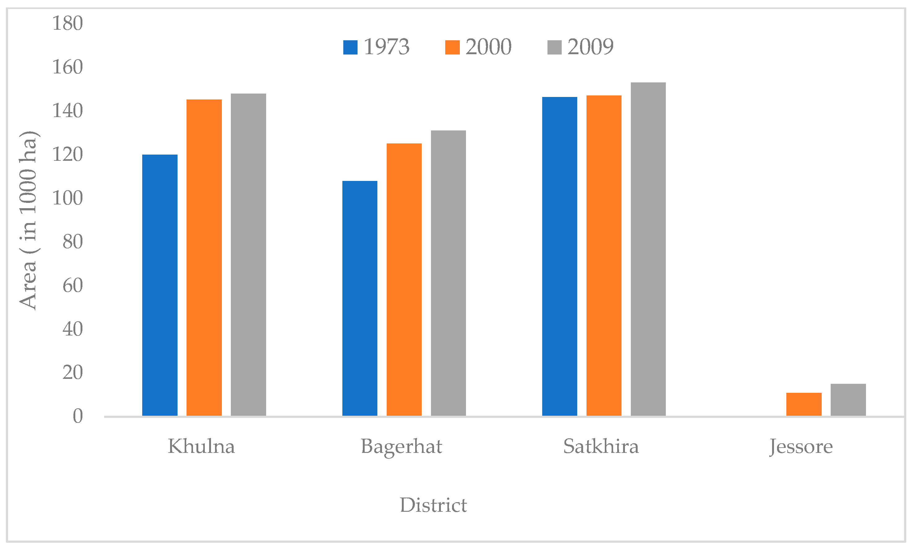- Parvin, S.; Sakib, M.H.; Islam, M.L.; Brown, C.L.; Islam, M.S.; Mahmud, Y. Coastal Aquaculture in Bangladesh: Sundarbans’s Role against Climate Change. Mar. Pollut. Bull. 2023, 194, 115431. [Google Scholar] [CrossRef]