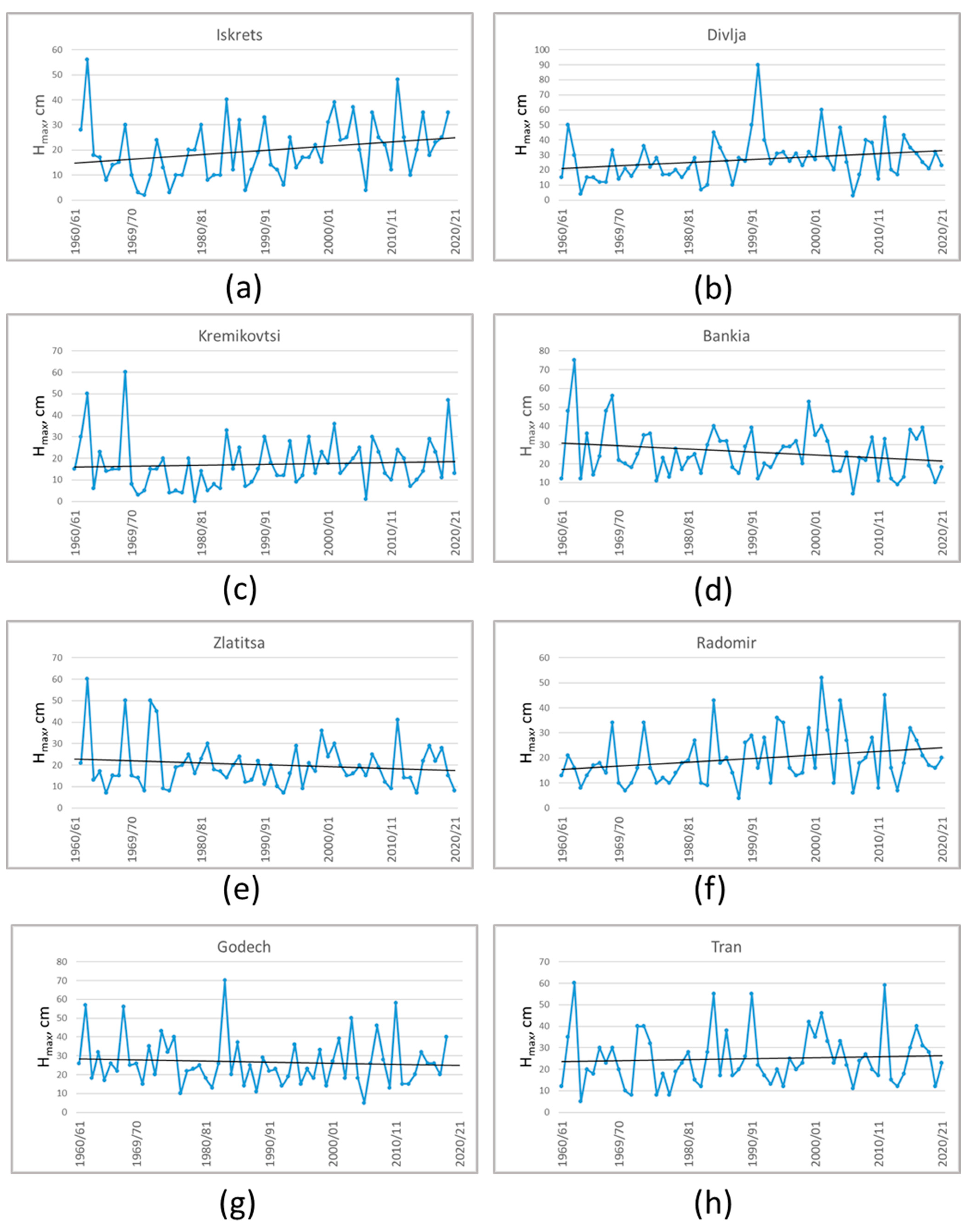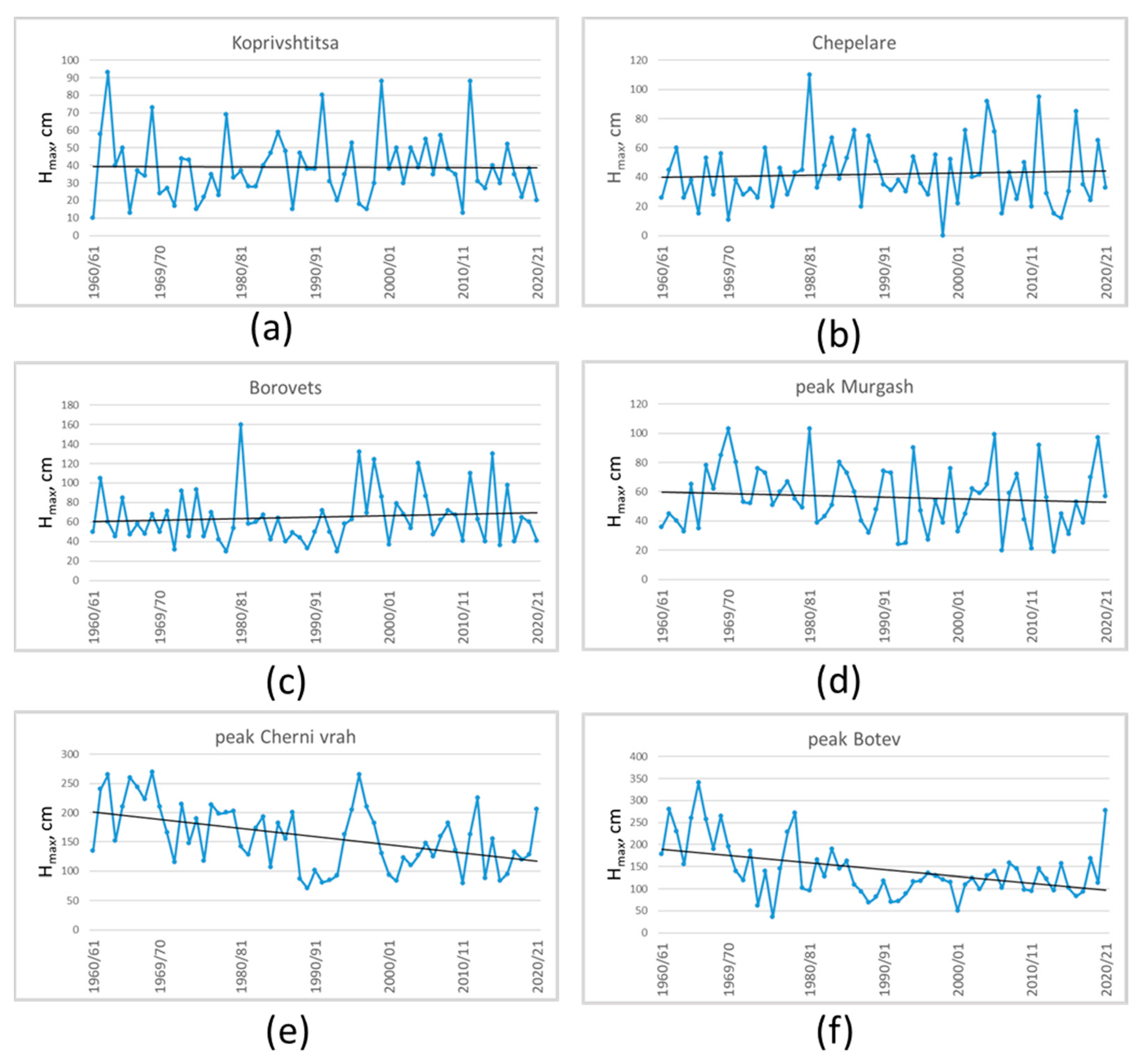 - Nikolov, D.; Dimitrov, C. Assessment of the long term variability of the snow cover in the Vitosha mountain, 2021, SGEM Conference Paper. In Proceedings of the 21st SGEM International Multidisciplinary Scientific GeoConference Proceedings 2021, Albena, Bulgaria, 16–22 August 2021. [Google Scholar] [CrossRef]