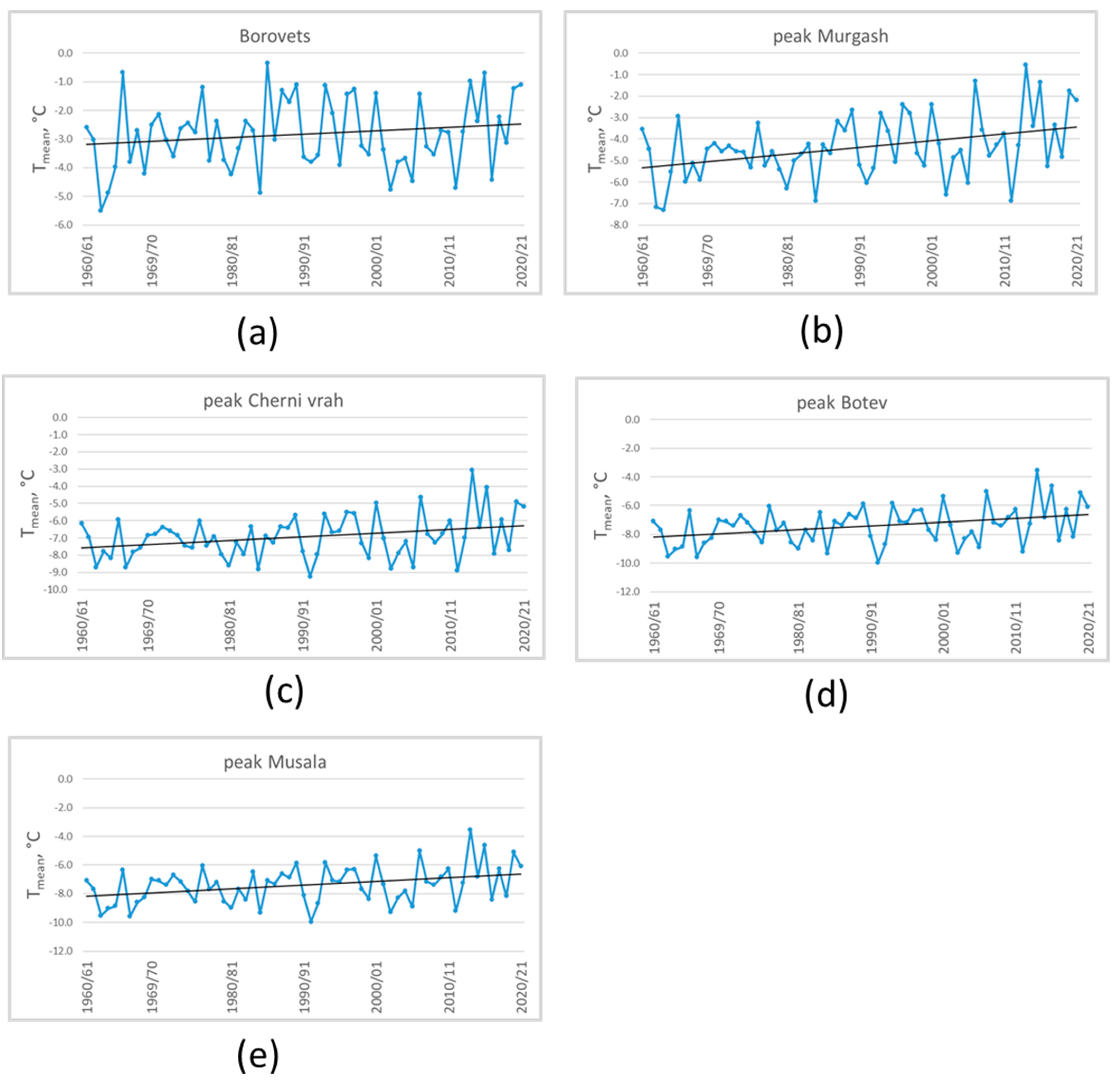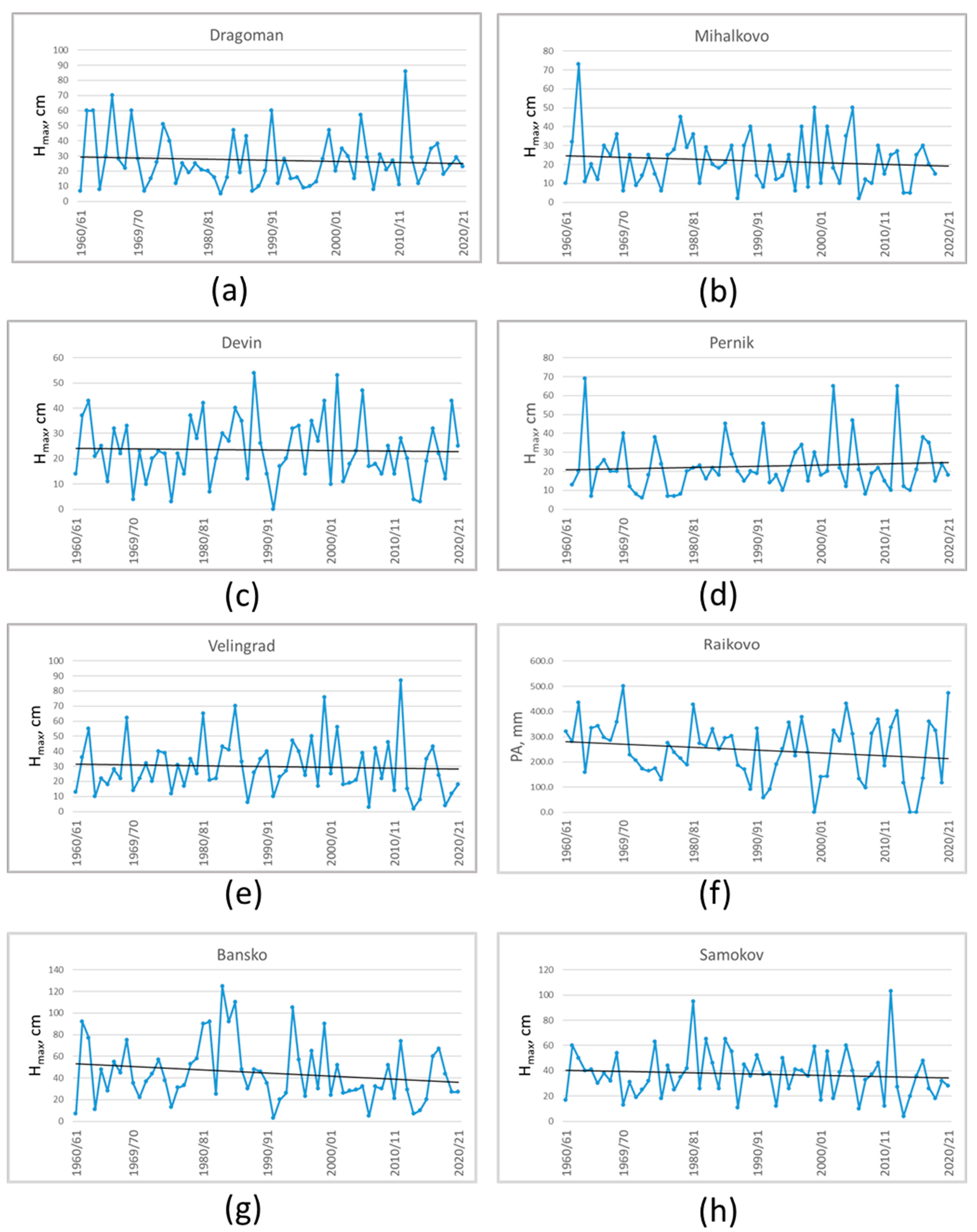 - Brown, R.; Petkova, N. Snow cover variability in Bulgarian mountainous regions, 1931–2000. Int. J. Climatol. 2007, 27, 1215–1229. [Google Scholar] [CrossRef]