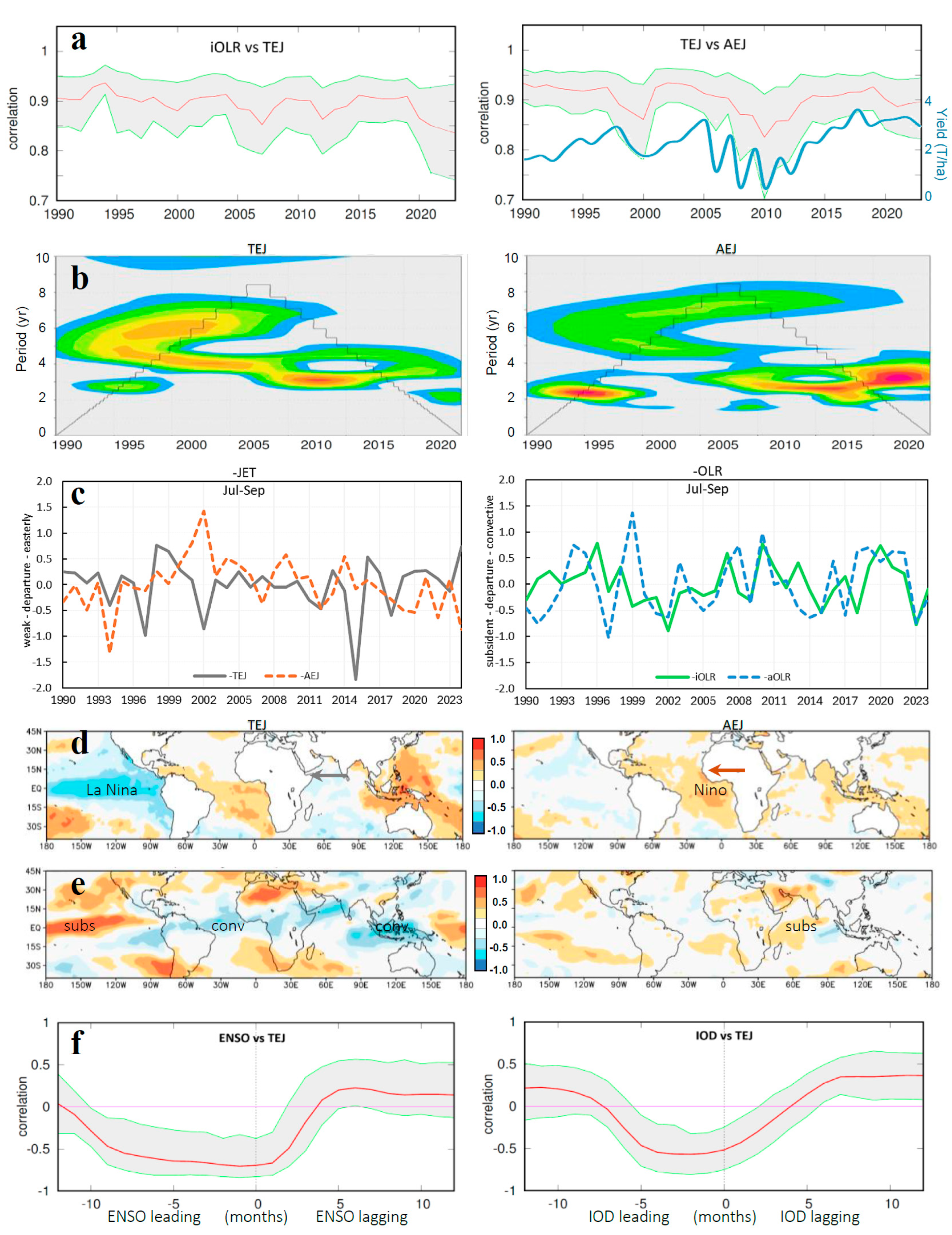 - Huang, S.; Wang, B.; Wen, Z.; Chen, Z. Enhanced tropical eastern Indian Ocean rainfall breaks down the tropical easterly jet–Indian rainfall relationship. J. Clim. 2021, 34, 3039–3048. [Google Scholar] [CrossRef]