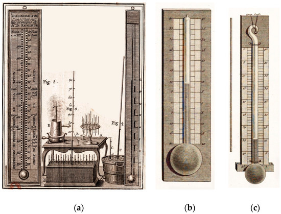 A commonality between Poleni, Morgagni, Zendrini, and Temanza, in addition to their friendship and interest in meteorology, was the use of the Amontons air thermometer (Figure 3b,c). In 1709, Poleni and Morgagni built an Amontons thermometer together [14], and Poleni used it throughout his life. Zendrini used an Amontons and a Delisle thermometer in Venice [7,17].