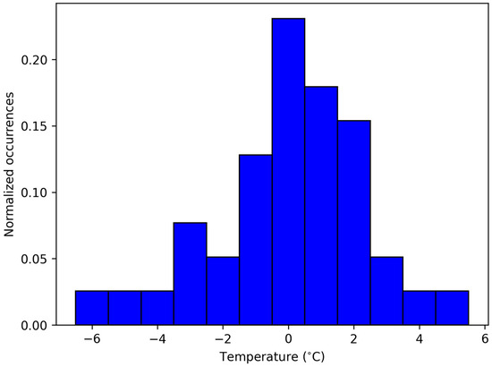 The correction for elevation cannot be made because the Temanza’s home and the floor where he lived are unknown, but the bias is certainly small. In Venice, the pavement is close to sea level. With reference to 2020, the city starts to flood when the sea level exceeds the zero reference in 1876 (called ZMPS) by 90 cm, and 50% of the streets are flooded when the level reaches 135 cm ZMPS [27]. If one considers the eustatic sea level rise and the land subsidence that has occurred since 1876, today the average height of the paving is about 1 m above the mean sea level. When Temanza took his measurements, the sea level was 60 cm lower [28,29]. As the residential buildings could reach four floors, assuming a middle position, the pressure correction due to the elevation is less than 1 hPa. This correction can be neglected to avoid over-corrections, especially when they are uncertain and less than 1 hPa.