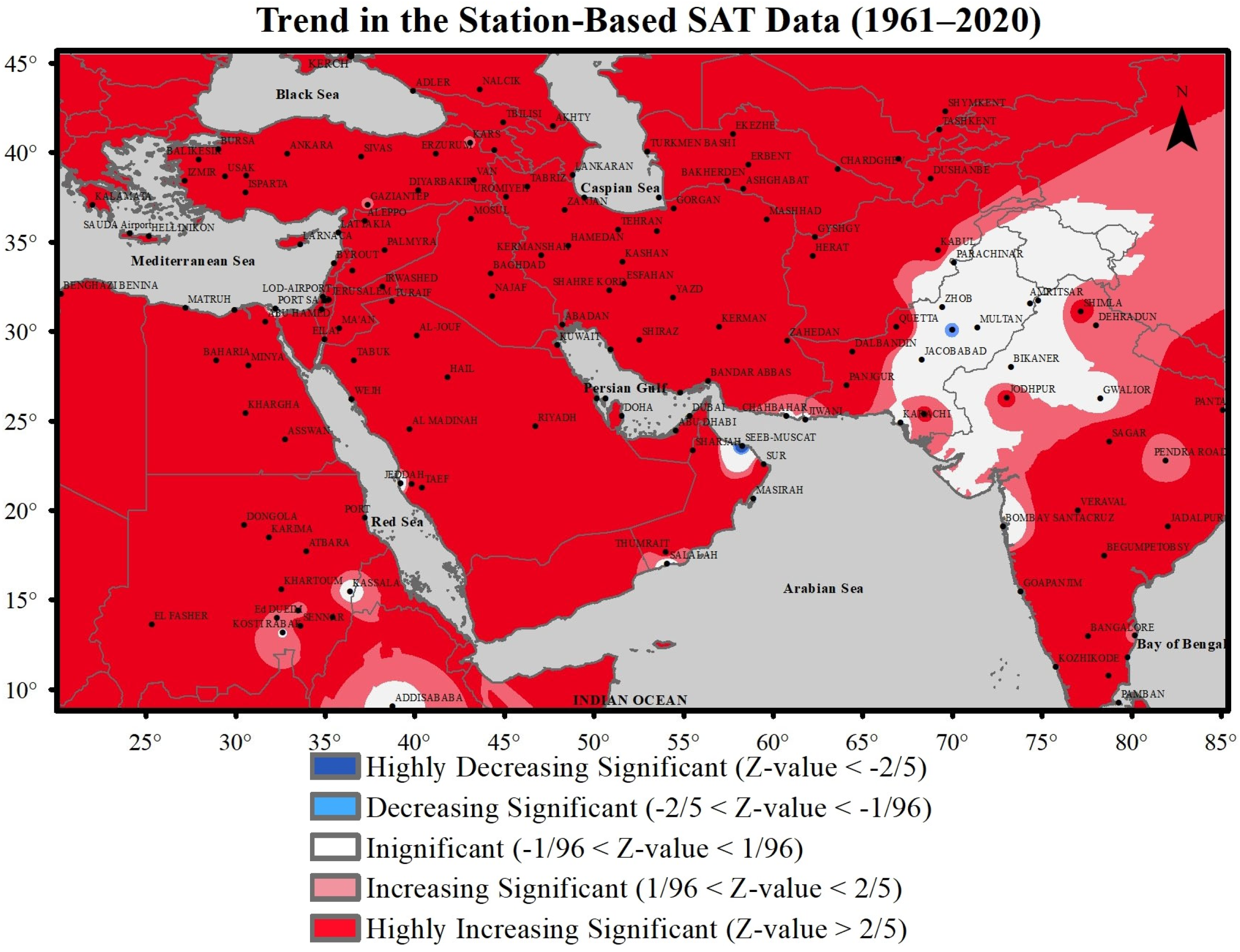3.1. The Middle Eastern Mean SAT Data