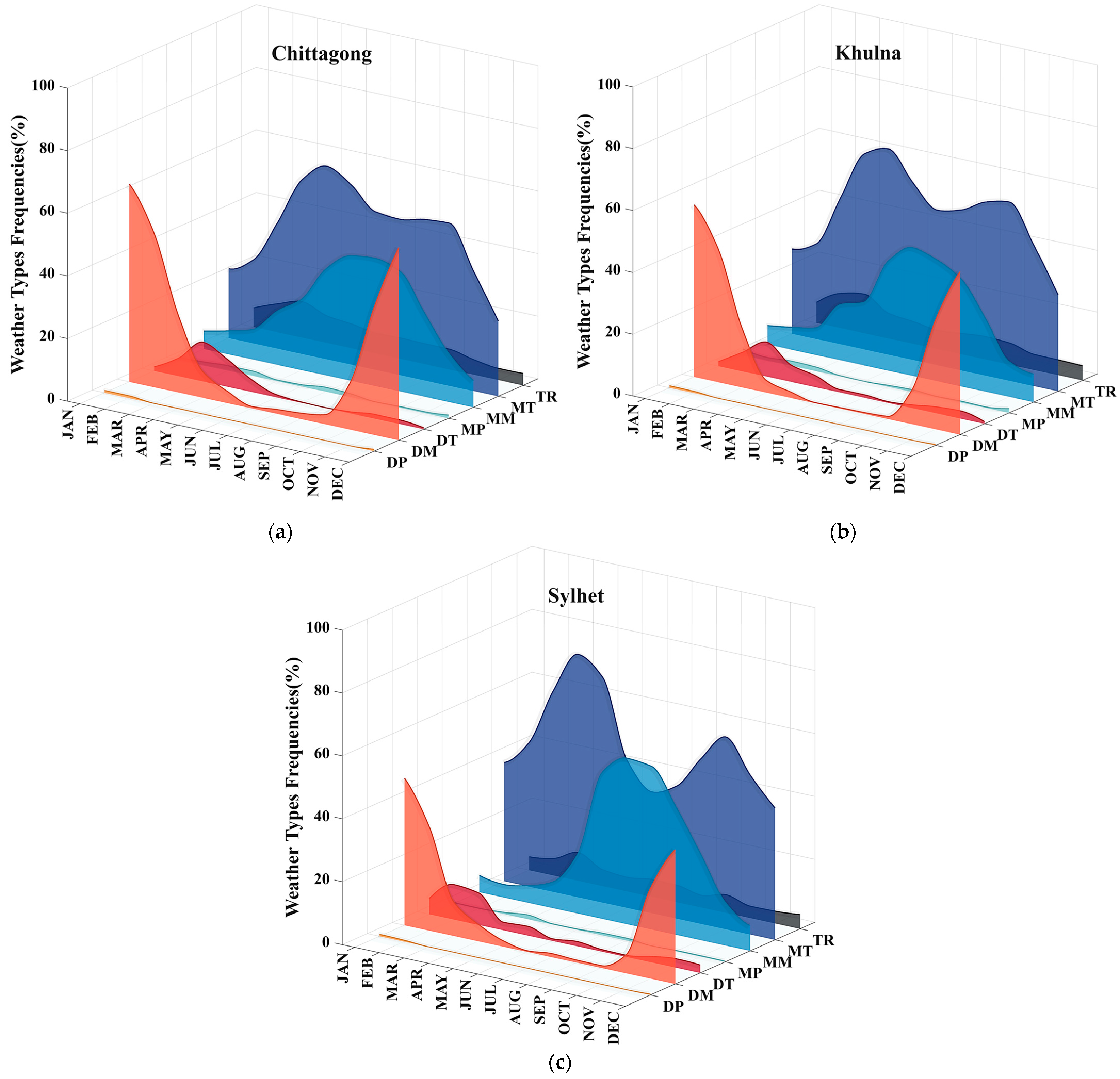 - Khatun, M.A.; Rashid, M.B.; Hygen, H.O. Climate of Bangladesh; MET Report; Bangladesh Meteorological Department: Dhaka, Bangladesh; Norwegian Meteorological Institute: Oslo, Norway, 2016.