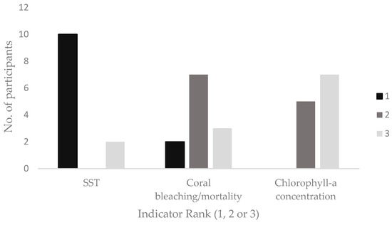 - Indicators that had their most common participant-given ranks differ by 3 (e.g., 1st vs. 4th) and displayed significant difference in ranking results were assigned very largely different weights (weight difference of >0.20).