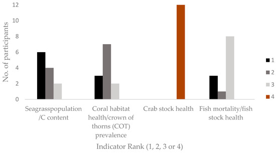 | Sea cucumber (holothurian) stock health | No—Although sea cucumbers are an important commercial resource in Vanuatu, this indicator comes with certain caveats when considered for the Vanuatu MHW risk assessment regarded in this study 2. | Yes—Available in Ducarme et al. [119]. | Species distribution data is available for the relative abundances of commercial sea cucumber species observed across 13 survey sites throughout the six provinces of Vanuatu for 2019–2020. | No; limited suitability for the study context; other indicators such as fish stock health and crab stock health would be more suitable as they are relevant to both commercial and subsistence fisheries. |