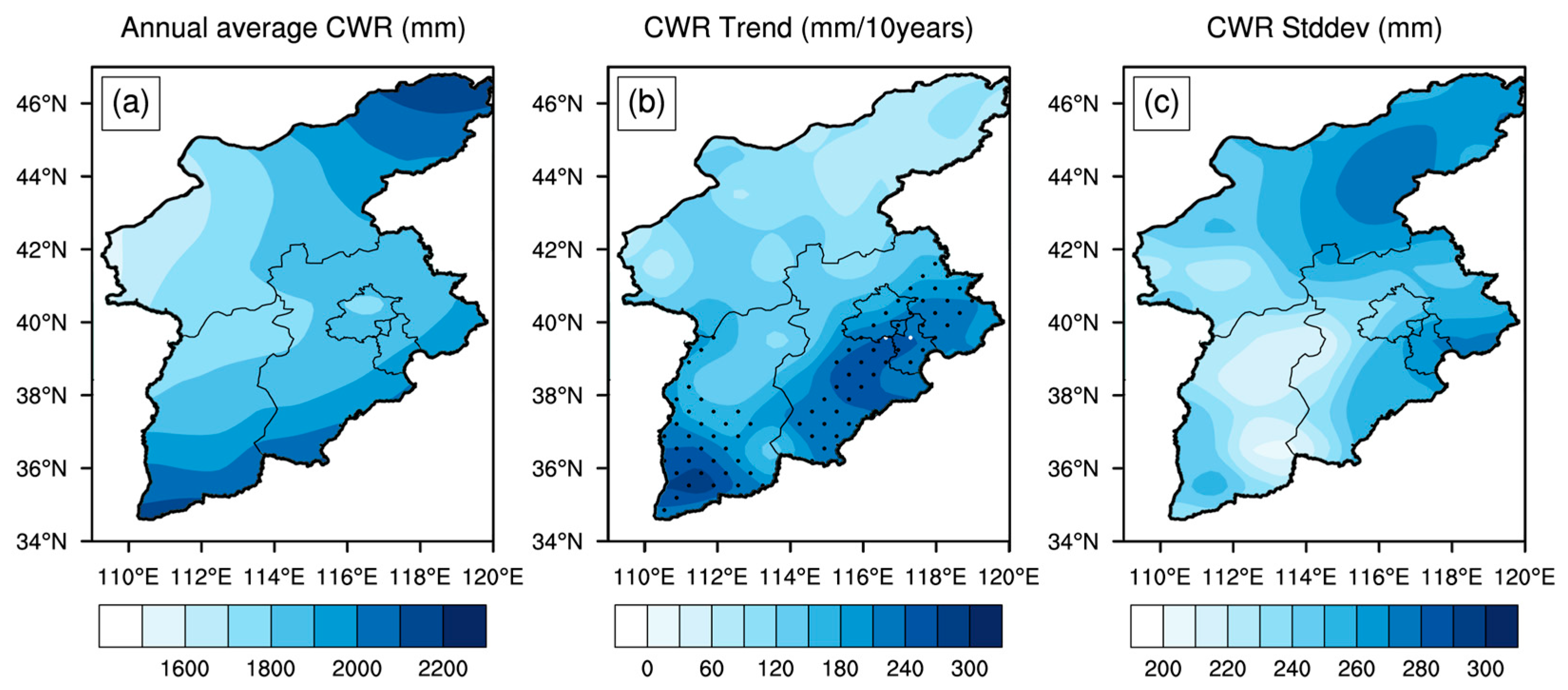 3. Spatiotemporal Variation Characteristics of CWR in the NCR