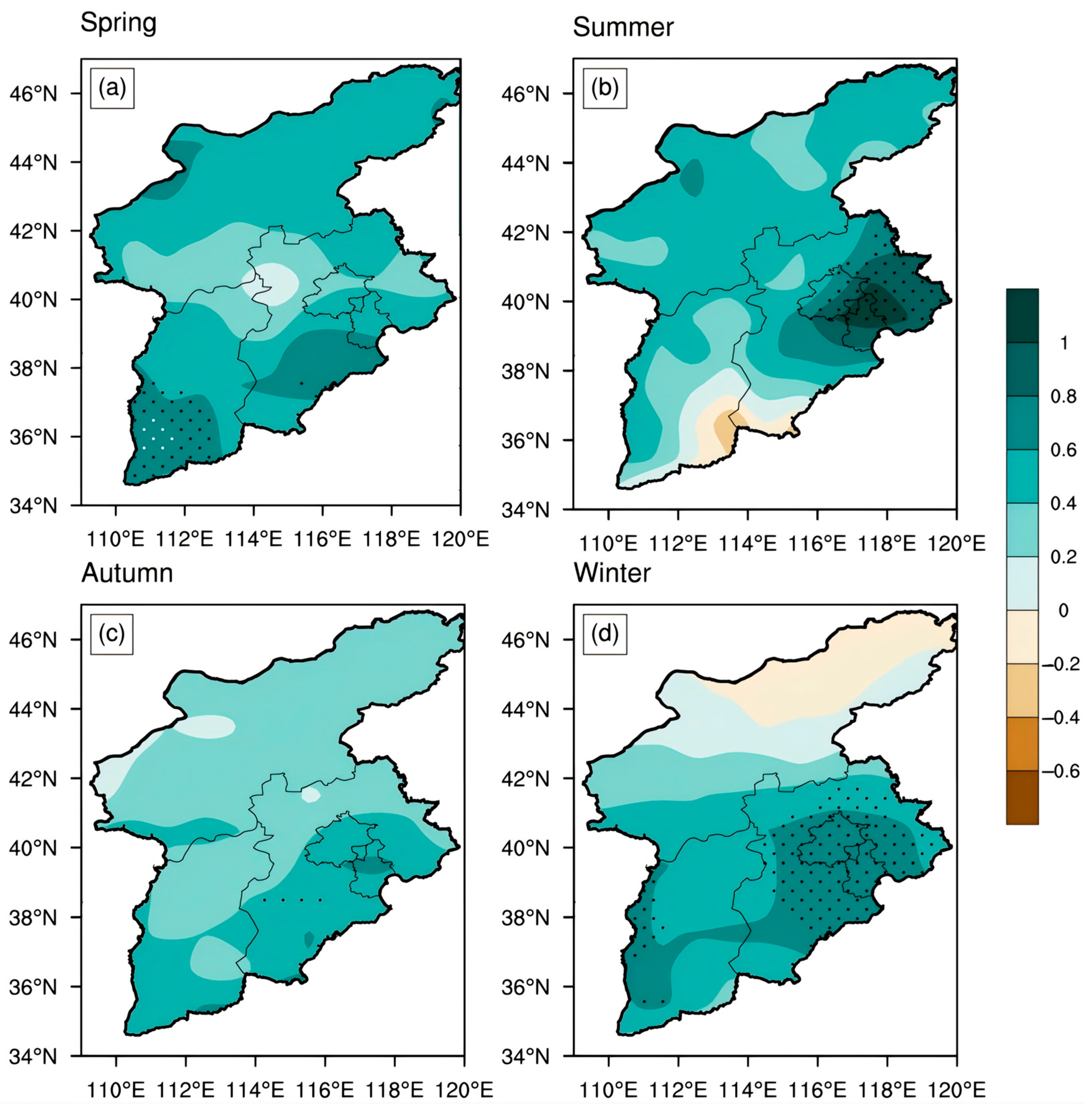 3.2.2. Climatic Distribution of CWR in Four Seasons