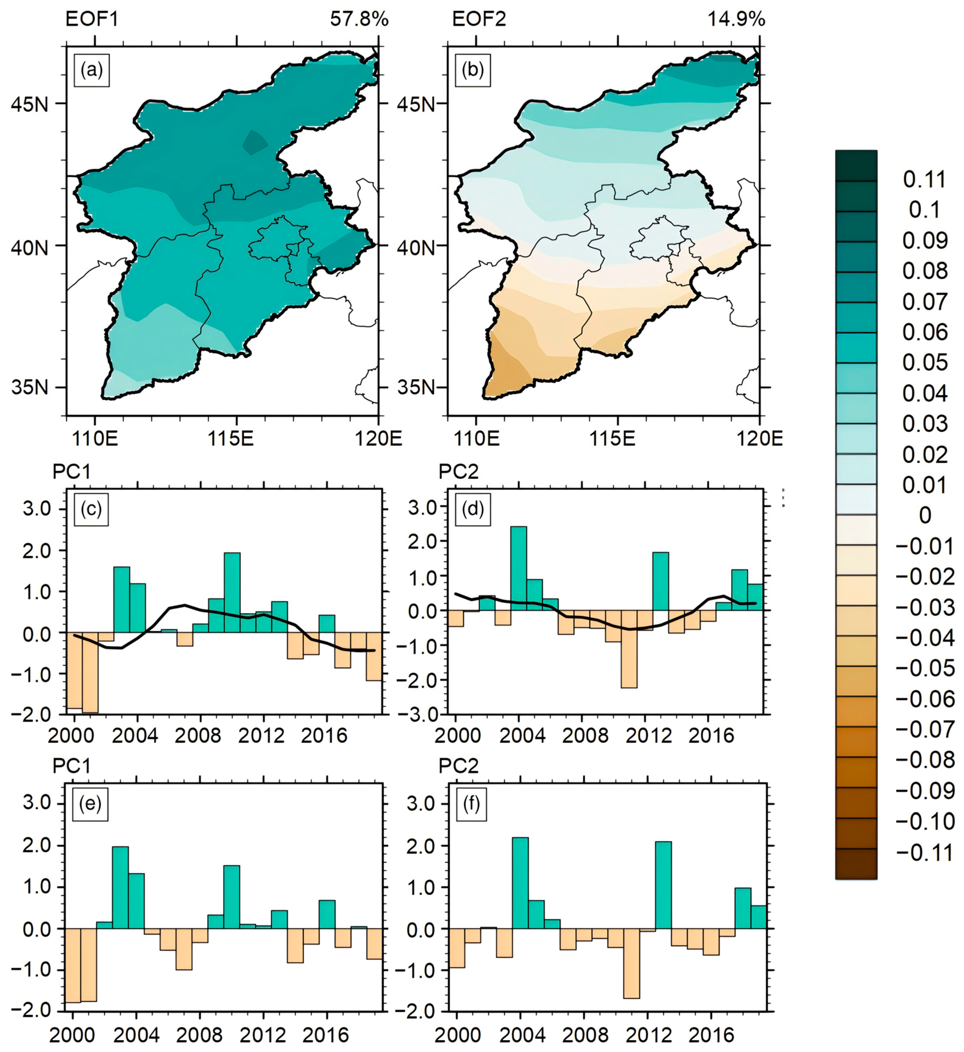 - North, G.R.; Bell, T.L.; Cahalan, R.F.; Moeng, F.J. Sampling errors in the estimation of empirical orthogonal functions. Mon. Weather Rev. 1982, 110, 699–706. [Google Scholar] [CrossRef]