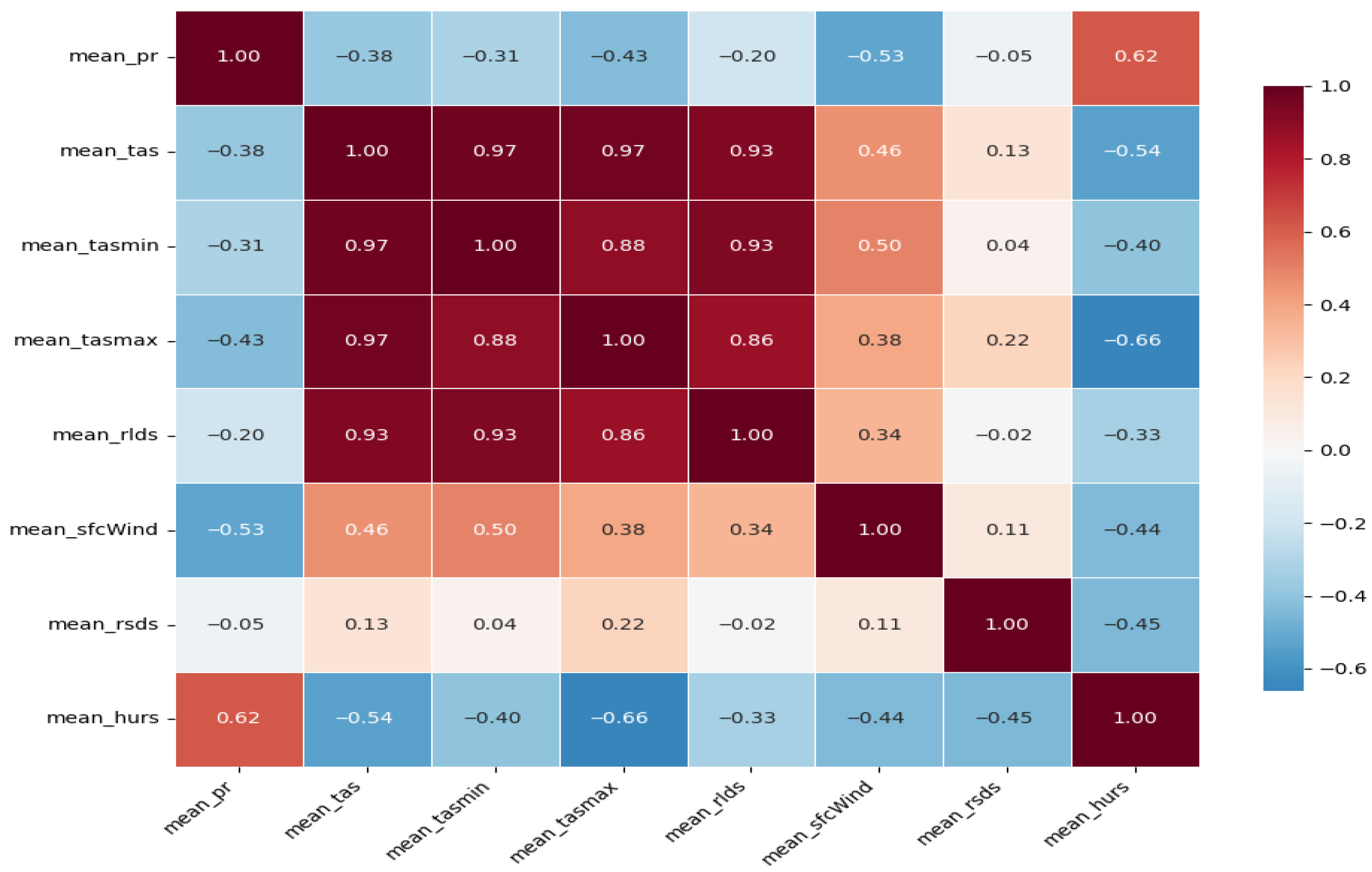 | Downward shortwave radiation (mean_rsds) | 1.45 |