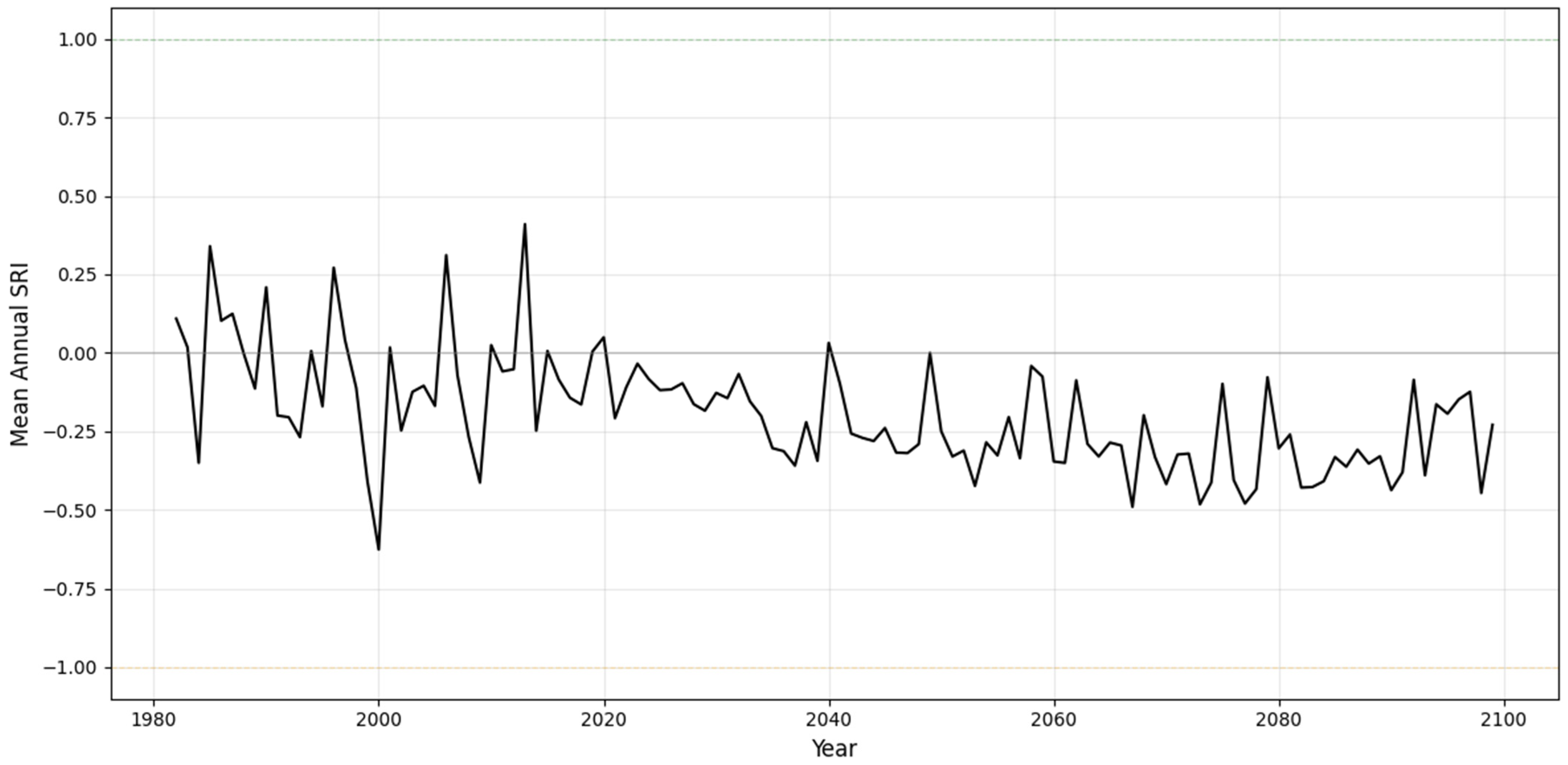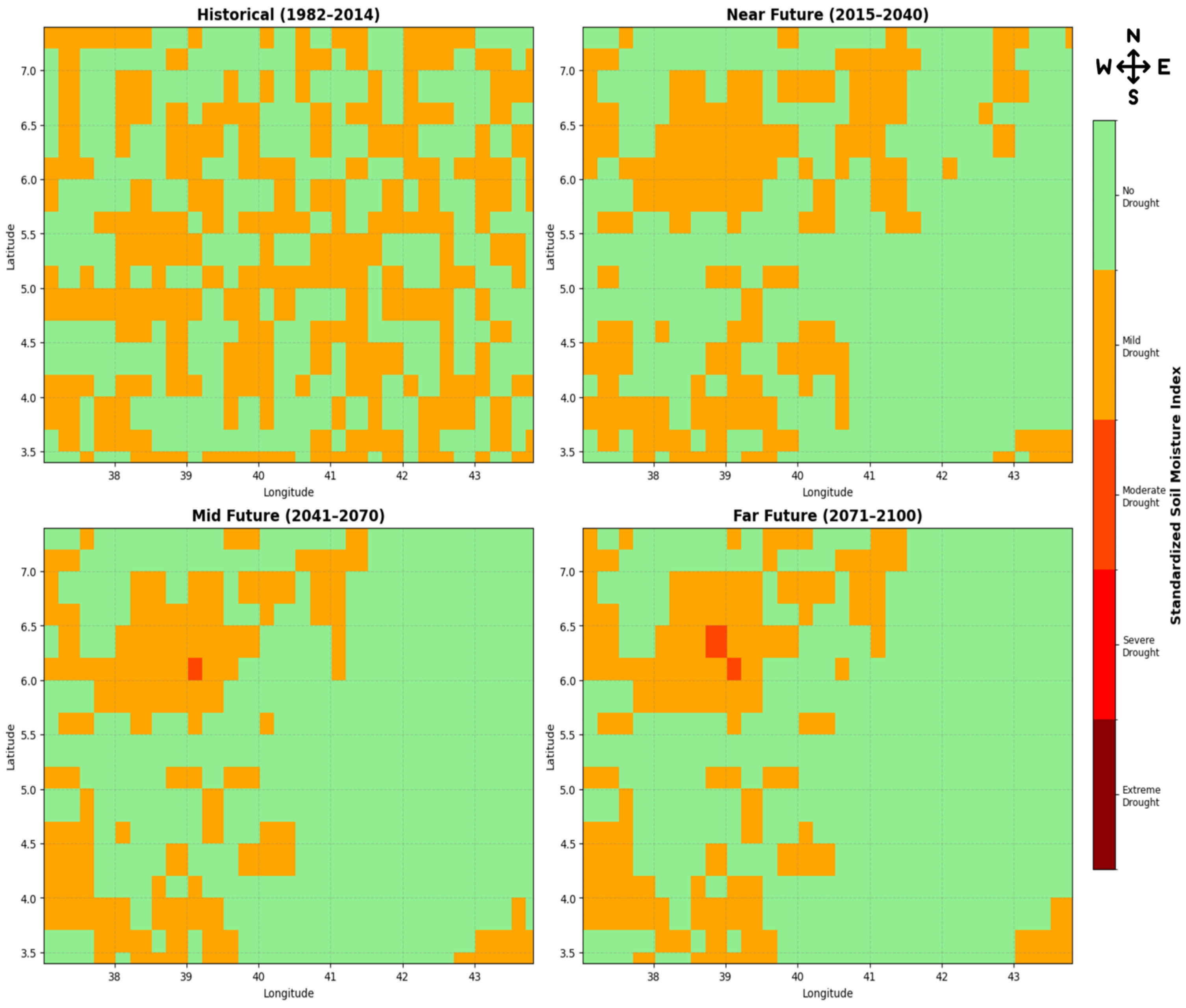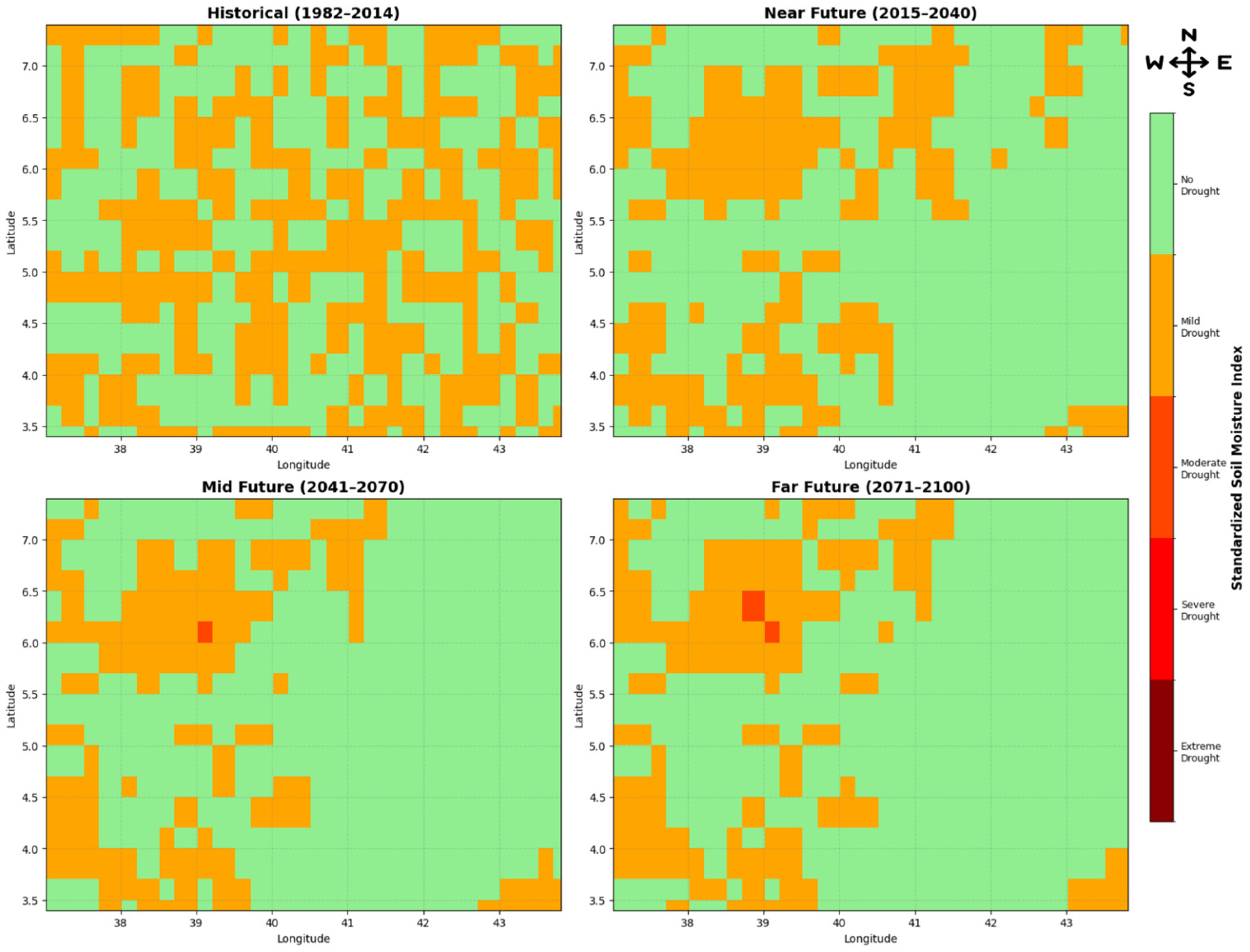 | CMIP6 | 0.27° (30 × 30 km) | 1982–2100 | NASA NCCS-NEX-GDDP CMIP6 |