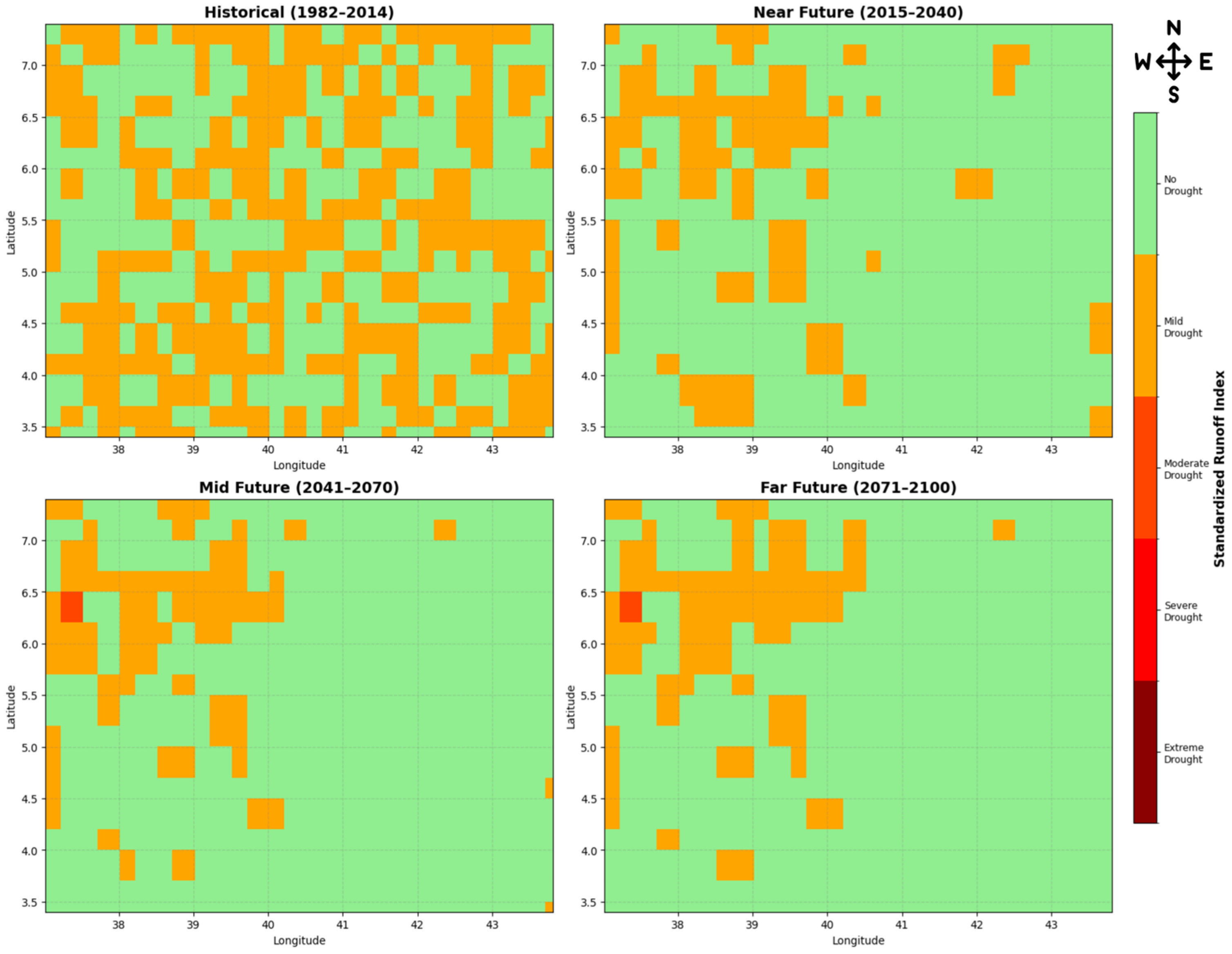 APA StyleAbdulahi, M. M., Egli, P. E., Belayneh, A., Bamutaze, Y., & Dejene, S. W. (2025). Impact of Climate Change on Drought Dynamics in the Ganale Dawa River Basin, Ethiopia. Climate, 13(11), 231. https://doi.org/10.3390/cli13110231