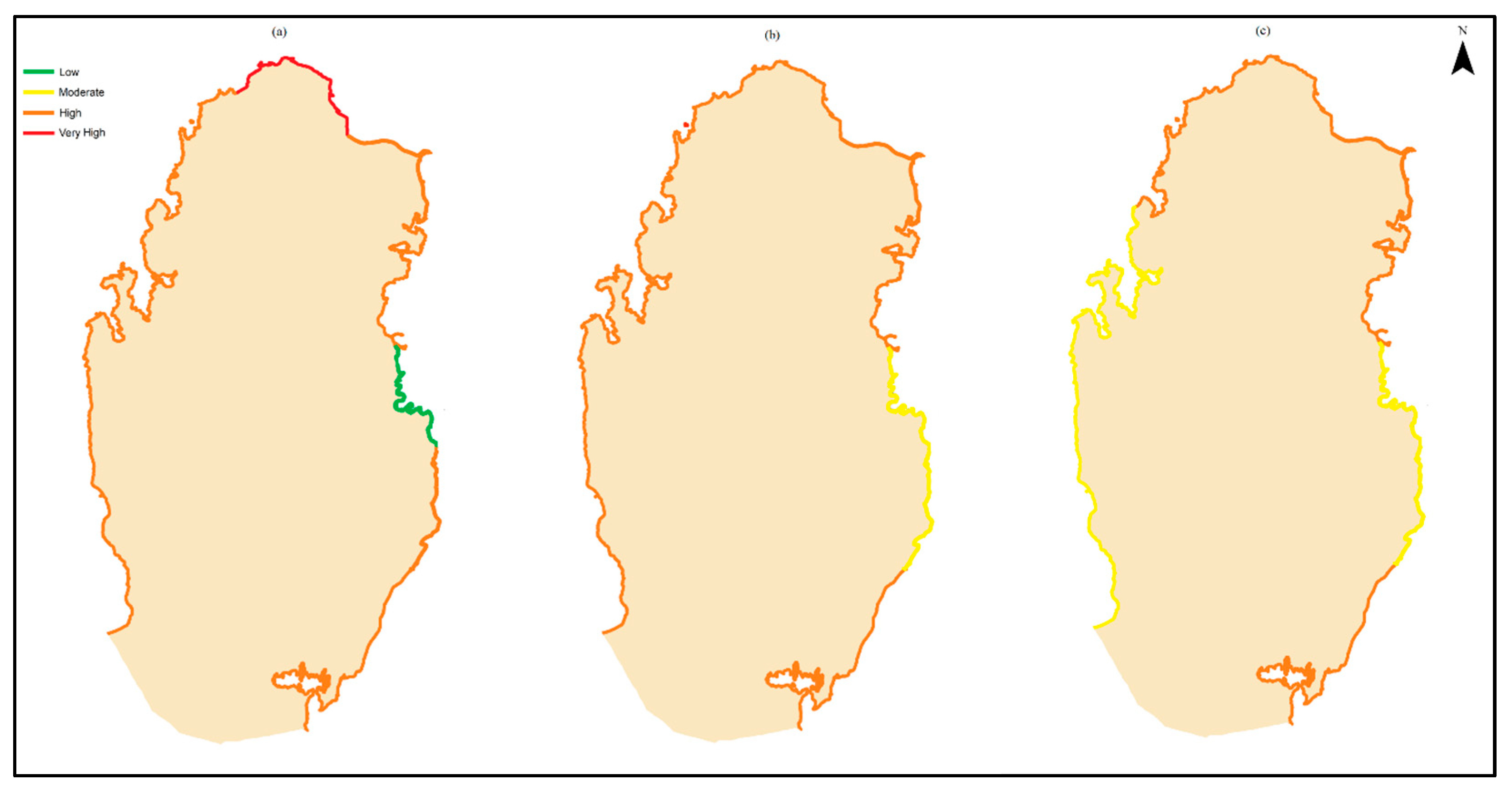 | Coastal Slope (%) | >36 | 22–36 | 10–22 | 5–10 | <5 |