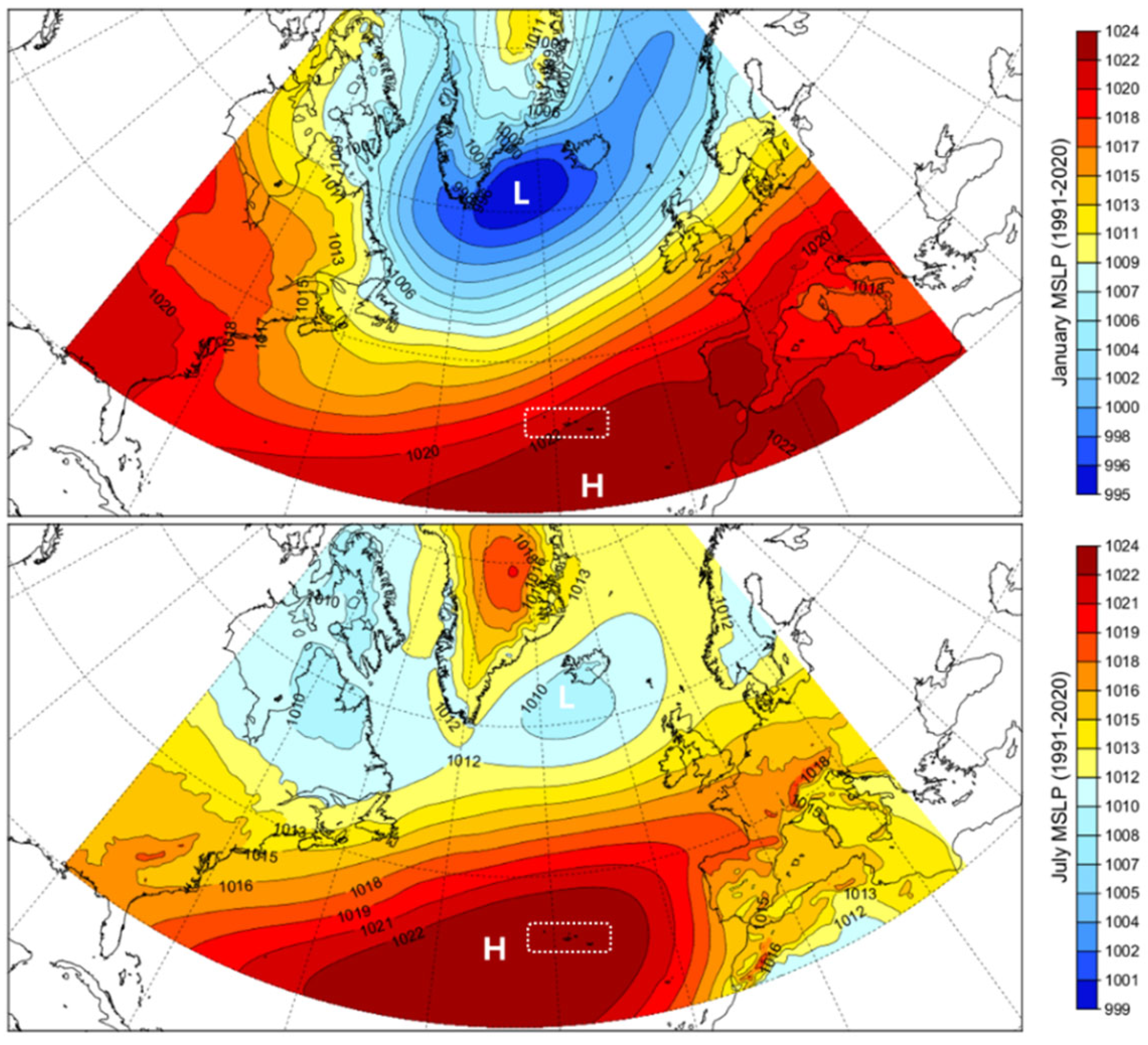 Out of the 21 stations analysed, 15 remained in the same cluster throughout the periods considered. Overall, Clusters 1 and 4 show a high degree of temporal stability, reflecting persistent rainfall regimes. In contrast, Clusters 2 and 3 exhibit greater variability, with changes in the number and composition of stations over time. Notably, after 2010, Algarvia and Sete Cidades migrated from Cluster 2 to Cluster 3, suggesting increased rainfall in these areas. The transitional behaviour of the Fogo III station, which shifted between Clusters 3 and 4, highlights the sensitivity of stations that are located in more exposed areas to slight variations in atmospheric circulation patterns.