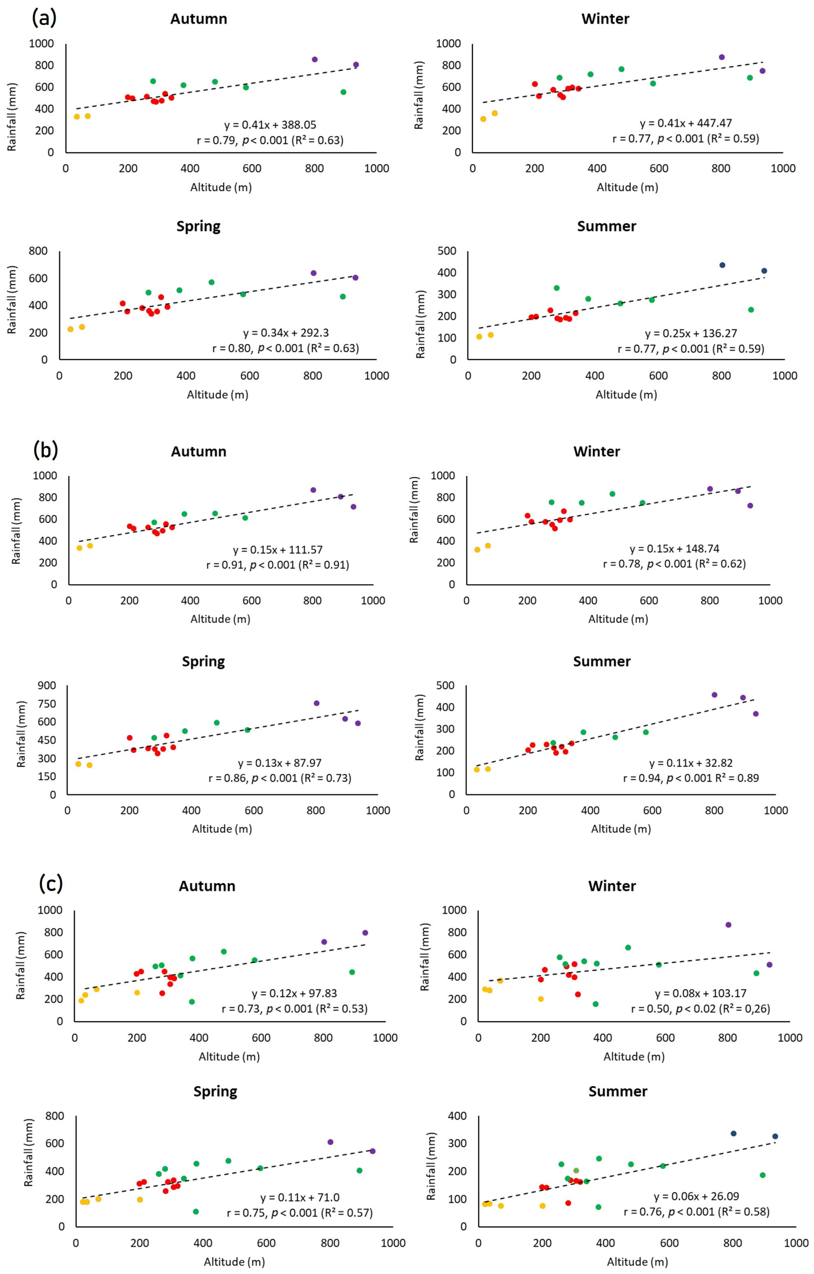 4.6. Altitude-Rainfall Relationship