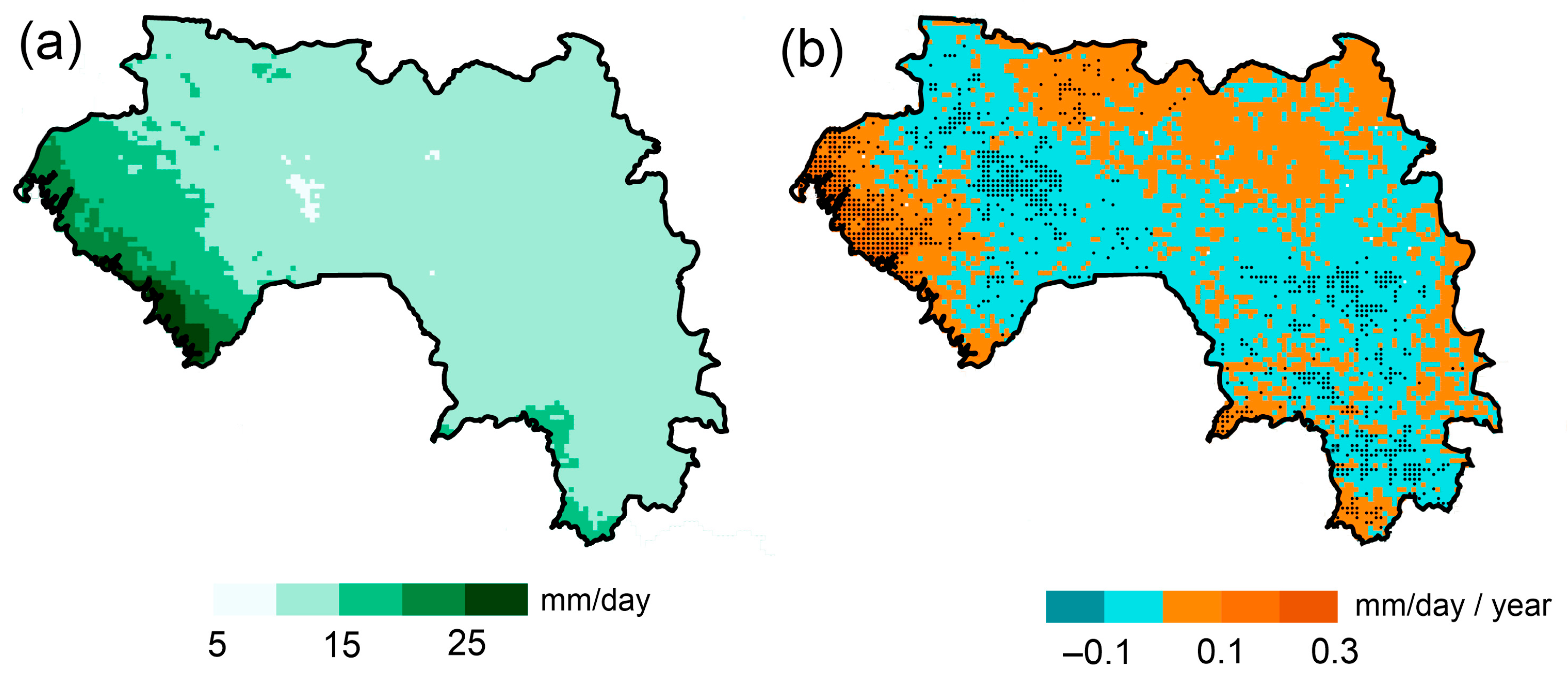 3.2. Precipitation Trends Across Guinea