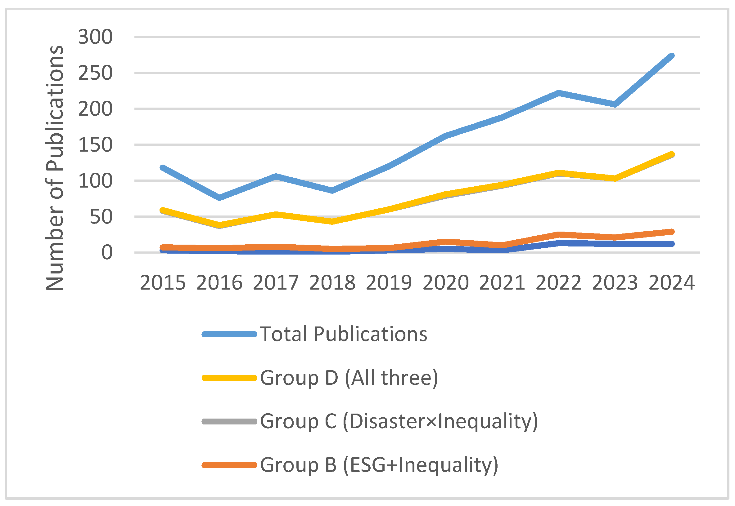 A review of recent academic work reveals that while each of these domains—ESG, disaster response, and social inequality—has received individual attention, studies addressing their intersection are rare and fragmented. For example, Pagano et al. [