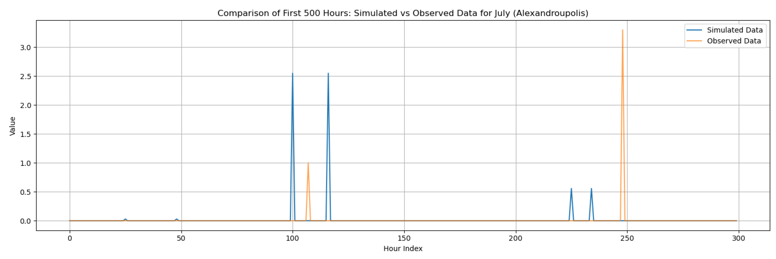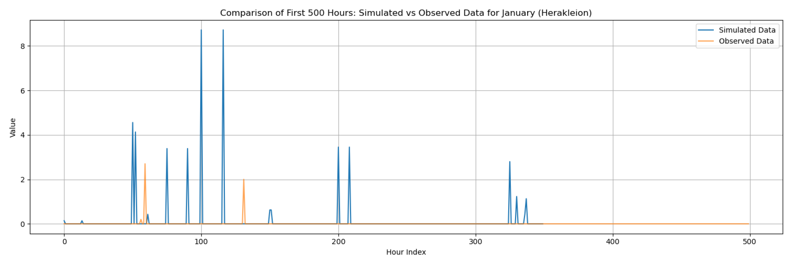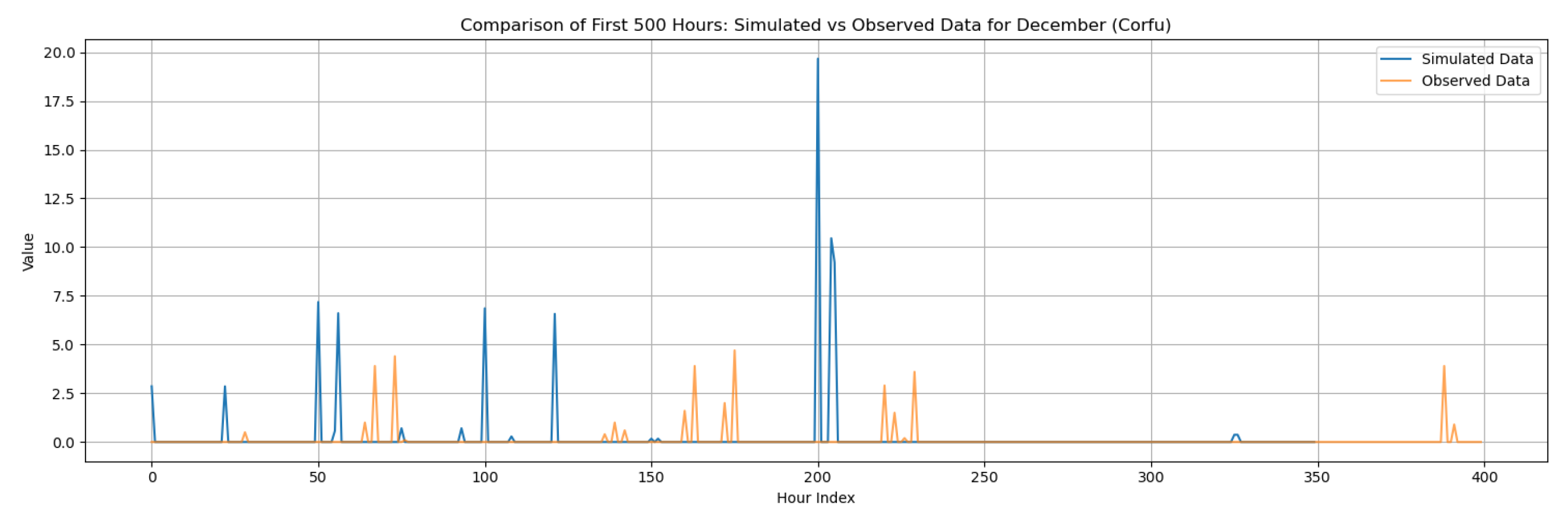 This section contains the complete set of monthly disaggregation results for all four study regions—Corfu, Rhodes, Alexandroupolis, and Herakleion—using both exponential and gamma pulse intensity distributions. While the main manuscript presents results only for the wettest and driest months of each region to emphasize key contrasts, the full twelve-month comparisons are provided here to ensure transparency and reproducibility. The figures include statistical comparisons between observed and synthetic rainfall series, supporting the evaluation of the RBLRPM’s performance across different climatic conditions and seasonal regimes.