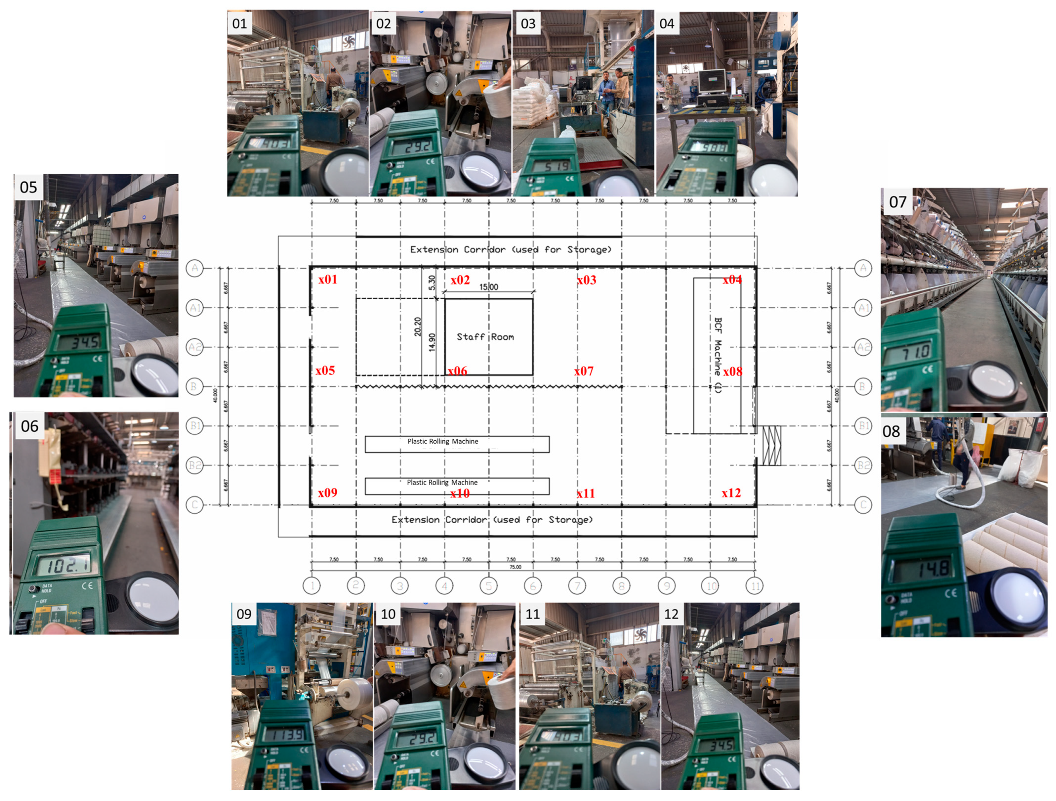 It is worth noting that there are some associated challenges in maintaining thermal comfort in industrial workplaces—particularly, the carpet and rug industry. The large, open indoor space design makes uniform temperature control difficult. Also, the high heat-generating equipment (during the tufting, dyeing, and drying processes) creates localized hot zones, while the glue application areas may require ventilation. Problems of temperature control and humidity fluctuations are mostly pronounced during the dyeing and washing stages, causing discomfort and mold risks; also, dry climates in fiber processing can cause static electricity build-up [