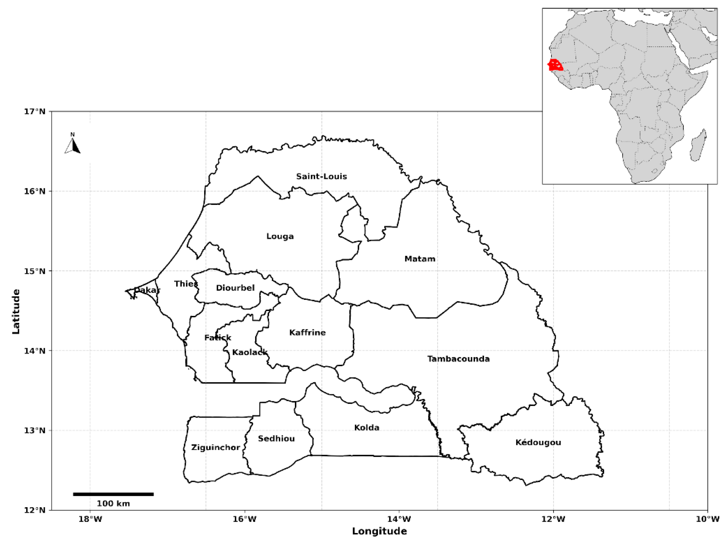 Diouf I, Fall P, Faye A, Diouf S, Diouf AK, Barry MB, Bodian A, Sall A. Assessment of Spatio-Temporal Trends in Rainfall Indices in Senegal: Validation of CMIP6 Models over the Historical Period and Projections Under Future Climate Scenarios. Climate. 2025; 13(12):247. https://doi.org/10.3390/cli13120247