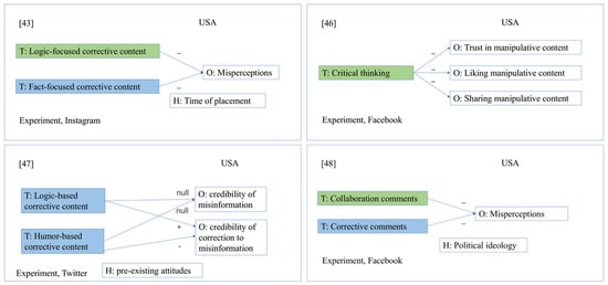 Figure 11 also shows that the effectiveness of specific corrective strategies is contextual and depends on heterogeneous factors such as the platform, the time of placing corrections [43], audiences’ pre-existing misperceptions of climate change [47], and political ideology [48]. For example, logic-focused corrective content, e.g., refuting rhetorical and logical flaws in the original post, helped to reduce audiences’ misperceptions ‘regardless of the placement before or after the misinformation’ on Instagram [43]. At the same time, fact-focused corrective content only worked when it was placed after misinformation. In another study focusing on Twitter [47], the effects of logic-based and humor-based corrections were mediated by audiences’ pre-existing attitudes toward climate change. In addition, these two intervention strategies were more effective if the issue in question was health-related rather than related to climate change misinformation. A study focusing on political ideology found that corrective comments have the potential effect of reducing misperceptions among people with consistent liberal beliefs on Facebook [48]. However, the authors emphasized the importance of collaborative comments involving diverse stakeholders to counter misinformation, as collaboration is a promising type of intervention regardless of political orientation, according to the authors.