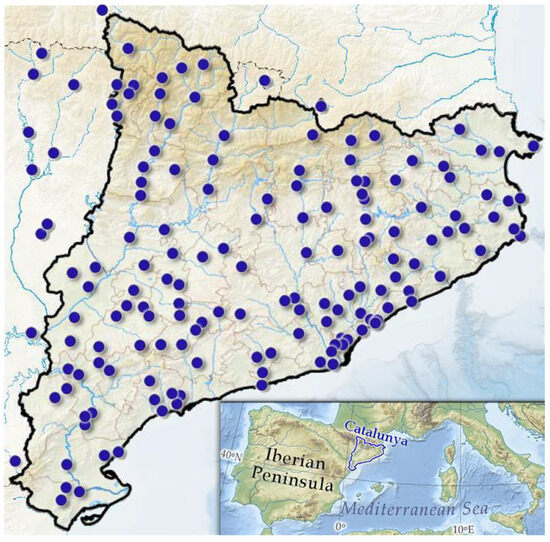 74. Martín-Vide, J.; Raso-Nadal, J.M. Atles Climàtic de Catalunya: Període 1961–1990; Institut Cartogràfic de Catalunya & Servei Meteorològic de Catalunya: Barcelona, Spain, 2008. [Google Scholar]