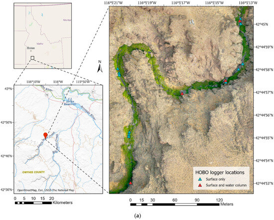 - Campbell, M.; Delparte, D. UAS survey images and in-stream logger temperatures for Little Jacks Creek, Idaho, USA [Data Set]. Idaho State University: Moscow, ID, USA, 2022. [Google Scholar] [CrossRef]