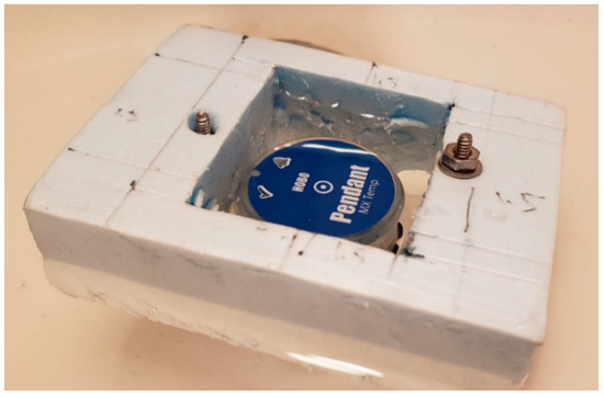 We assessed the error that comes from thermal sources around TIR sensors, such as uneven cooling and heating of the camera by wind or solar radiation, by comparing the thermal data with 23 HOBO TidbiT v2 temperature loggers stationed at 15 locations throughout the reach (Figure 1a). The AL04 only captures reflectivity representing the top 1 mm of water [37], so to ensure it was recording an accurate representation of the full water column, we tethered three loggers at different depths (surface, middle, and bottom) for 4 of the 15 logger locations (Figure 1a) and tested for significant differences between the stratified loggers. The loggers on the surface were housed in white, polystyrene foam boxes (Figure 2) to prevent the influence of solar radiation on the logger values. The loggers recorded temperatures at 1 min intervals. We paired the true temperature value recorded from the logger with the TIR pixel value directly next to each logger location based on the location of the logger in the RGB orthomosaic (Figure 3). We used the single nearest TIR pixel value directly next to the surface logger pixels to ensure that we were not inadvertently using the TIR value from the foam housing itself.