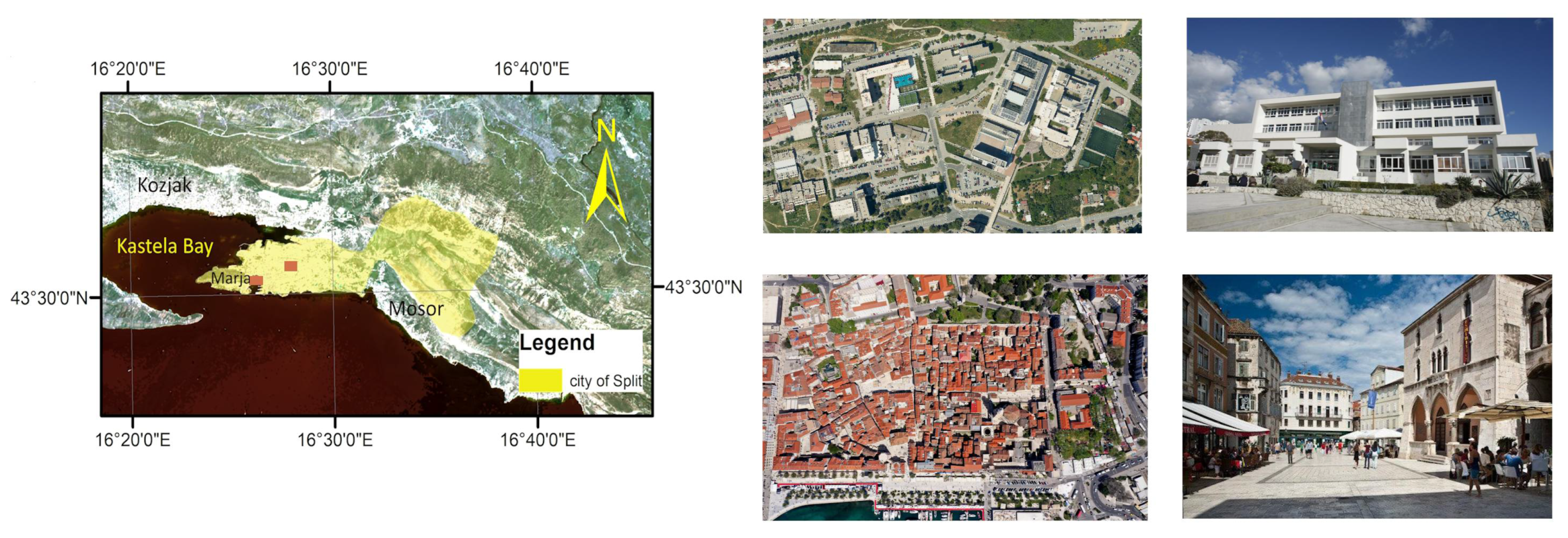 2.1. Study Area—City of Split (Old City Center and Campus Area)
