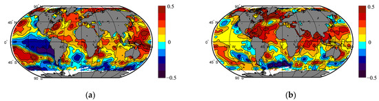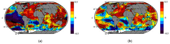 When using ocean information to monitor climate change and develop predictive climate models, including those based on artificial intelligence technologies, an important aspect is the selection of representative ocean characteristics that can be used as predictors. The most commonly used feature is SST, particularly in the low latitudes of the Atlantic [27,28], Indian and Pacific Oceans [29], where SST variations are driven by the AMO, El Niño Southern Oscillation (ENSO) [30,31], solar activity and orbital changes in insolation. Another ocean characteristic can be sea level. It is known that sea levels are driven by rising upper ocean temperatures (50% and 38% of the total increase over 1971–2018 and 1901–2018, respectively) and the melting of ice sheets and glaciers (42% and 41% of the total increase over the same years) [32]. These changes occur over periods of years to decades and can therefore serve as indicators of climate change on similar scales [33].
