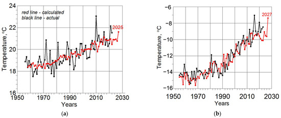 Experimental forecasts by regression models from Table 3 show an increase in SAT in both the Arctic and Eastern Europe over the next 3–4 years (see Figure 9). The SAT increase is due to the SST anomaly in the tropical North Atlantic, reflected by the “TNA” anomaly (more than three standard deviations from the mean) in the autumn of 2023, and a gradual increase in SST in the entire tropical region, reflected by an increase in the SL in Manila.