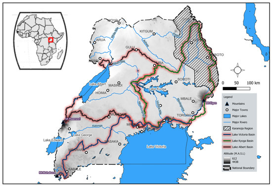 - BakamaNume, B.; Bamutaze, Y.; Buyinza, M.; Lwasa, S.; Nyakaana, B.J.; Matete, N.; Nakileza, B.; Sengendo, H.; Tumwine, F. A Contemporary Geography of Uganda, 1st ed.; Mkuki na Nyota Publishers Limited: Dar es Salam, Tanzania, 2015. [Google Scholar]