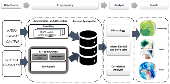 Gridded windspeed, vapor pressure, and vapor pressure deficit data for the period 1980–2023 were sourced from TerraClimate [37].
