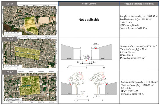 T (LCZ 3-C) corresponds to a Compact Low-Rise (LCZ 3-2) zone with vegetation present in the canyon;