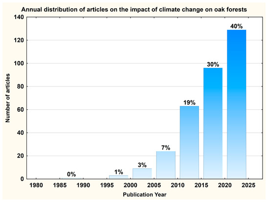 Annual distribution of keywords related to the impact of climate change on oak forests.