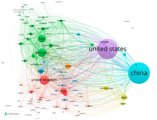 Country activity of air pollution research (via software VoSViewer 1.6.20exe).