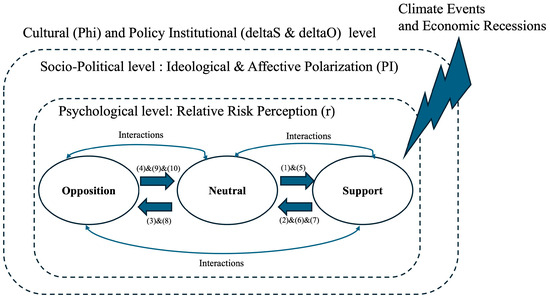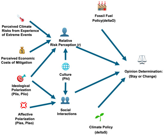 - Shin, Y.A.; Constantino, S.M.; Beckage, B.; Lacasse, K. Climate Change and Opinion Dynamics Models: Linking Individual, Social, and Institutional Level Changes. Curr. Opin. Behav. Sci. 2025, 64, 101528. [Google Scholar] [CrossRef]