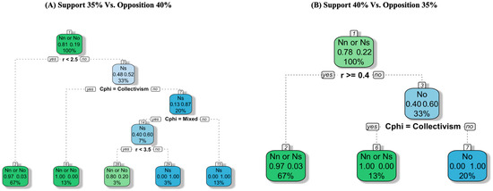 - Scenario 2. The sensitivity analysis shows that when the opposition opinion is initially larger, 19.3% of model runs (3626 out of 18,750) resulted in the support group becoming dominant within the next 20 years. When the support opinion is initially larger, 22.0% of model runs (4125 out of 18,750) resulted in the opposition group becoming dominant within the next 20 years. The decision tree analysis for this scenario is in Figure 3.