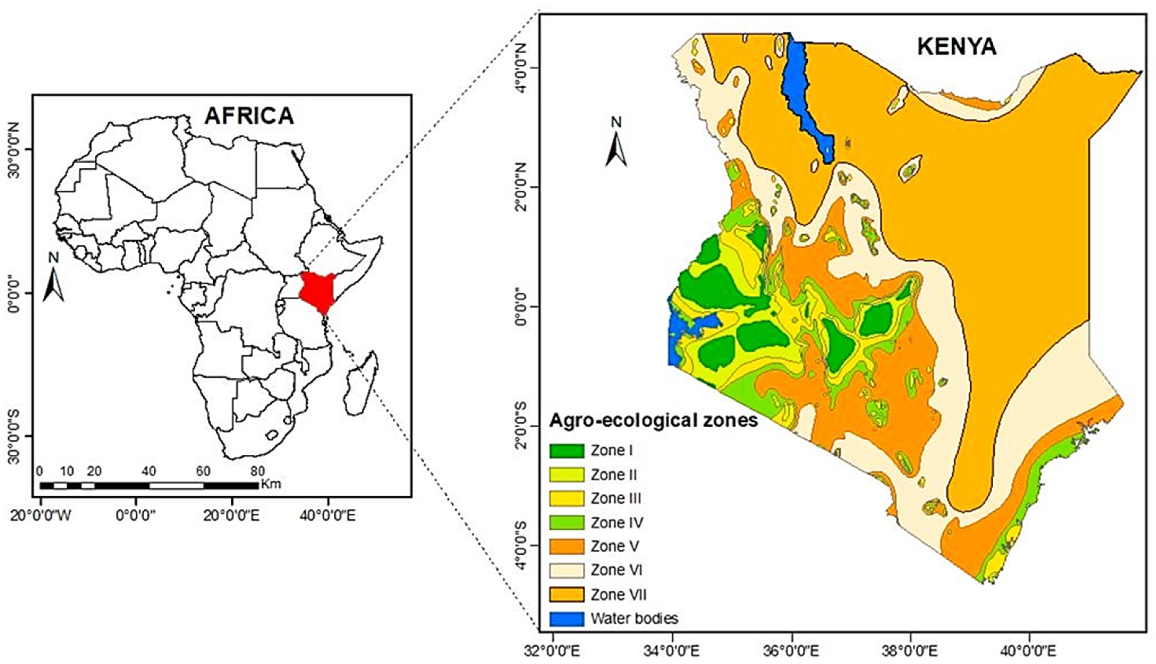 Kenya’s climatic variability is closely tied to its agro-ecological zones, which range from the humid highlands with annual rainfall above 1200 mm to the dry lowlands and arid northern plains that often receive less than 400 mm. The agro-ecological zones vary by rainfall and agricultural potential. Zone I is humid with high rainfall and excellent farming conditions. Zone II is sub-humid, receiving moderate rainfall and supporting medium to high agricultural productivity. Zone III is semi-arid with low to moderate rainfall and limited farming potential. Zone IV is arid, characterized by low rainfall. Zone V is very arid with minimal agricultural viability. Zone VII is transitional, lying between arid and desert climates [