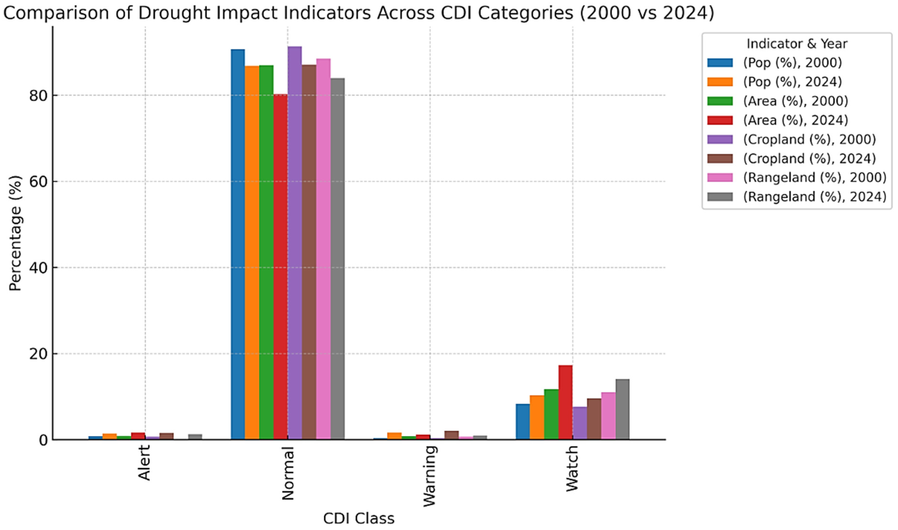 Comparative analysis with regional and global studies further situates these findings within a broader drought-monitoring discourse. The four-class CDI aligns with international drought early warning practices [